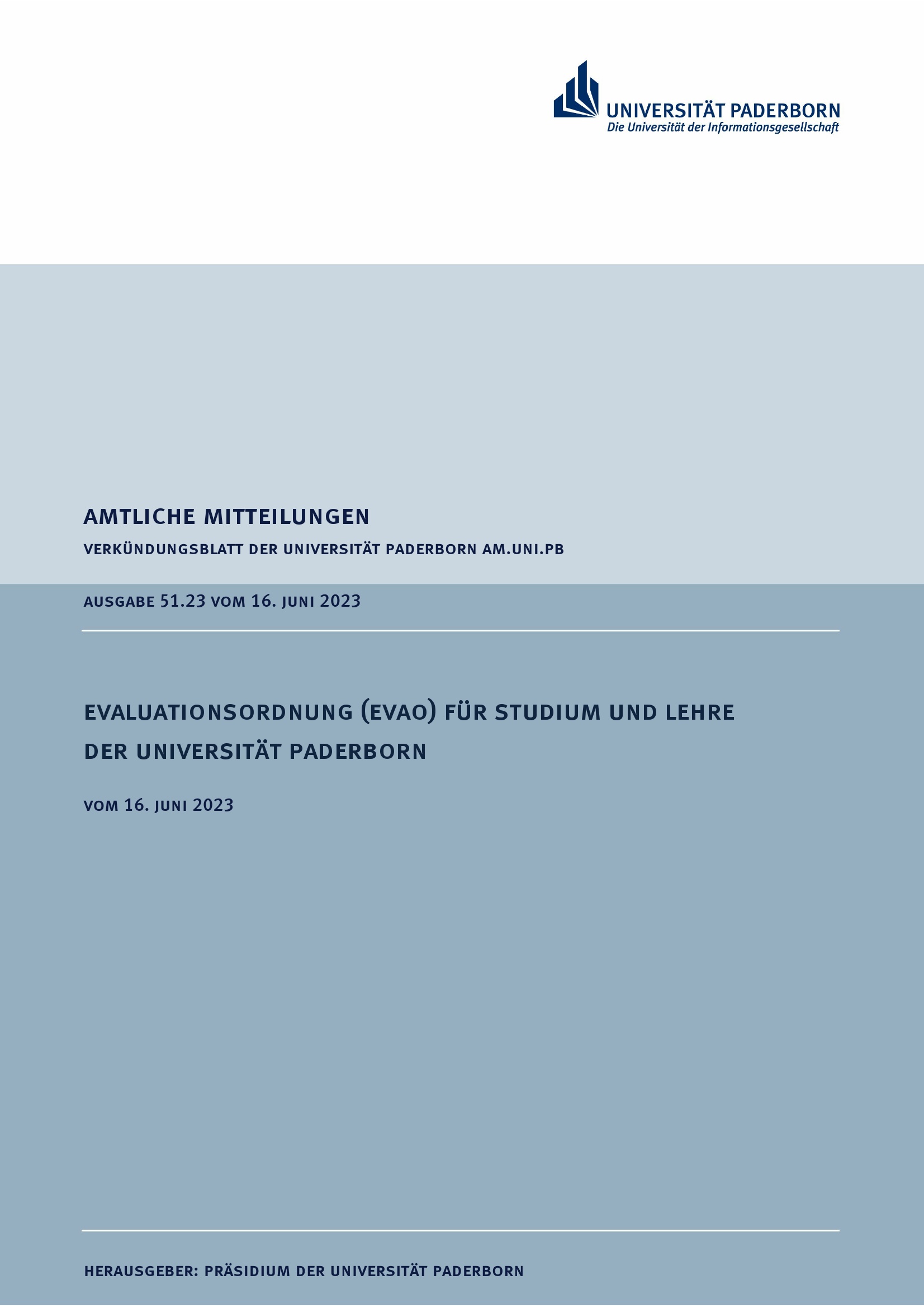 Evaluationsordnung (EVAO) für Studium und Lehre der Universität Paderborn : vom 16. Juni 2023