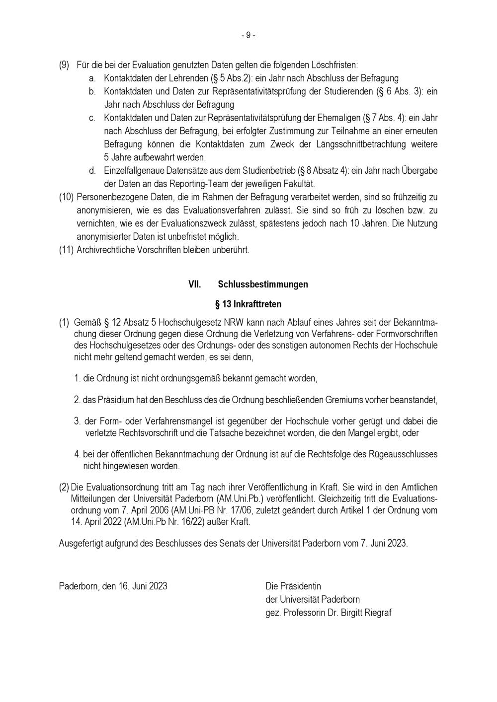 Evaluationsordnung (EVAO) für Studium und Lehre der Universität Paderborn : vom 16. Juni 2023