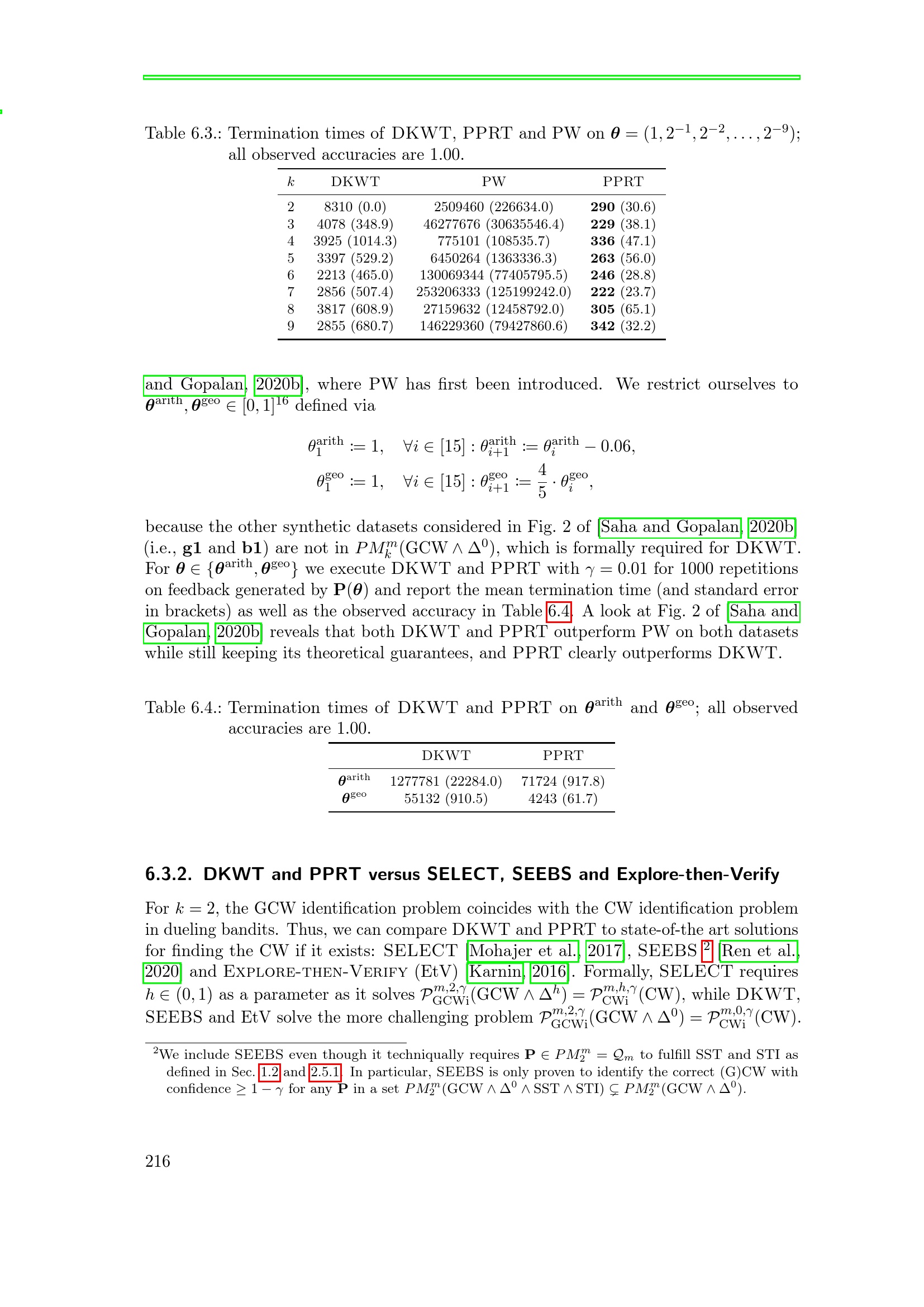 DKWT and PPRT versus SELECT, SEEBS and Explore-then-Verify