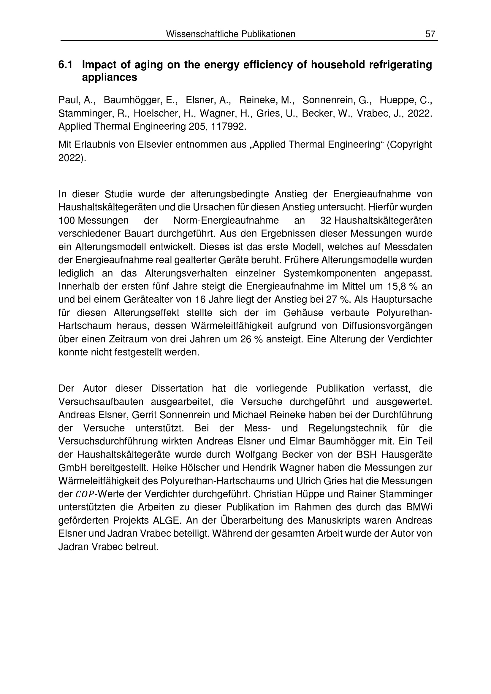 Analyse von Alterungsmechanismen im Hinblick auf die Effizienz von Haushaltskältegeräten / von Dipl.-Ing. Andreas Paul ; Referent: Prof. Dr.-Ing. habil. Jadran Vrabec, Korreferentin: Prof. Dr. Tina Kasper