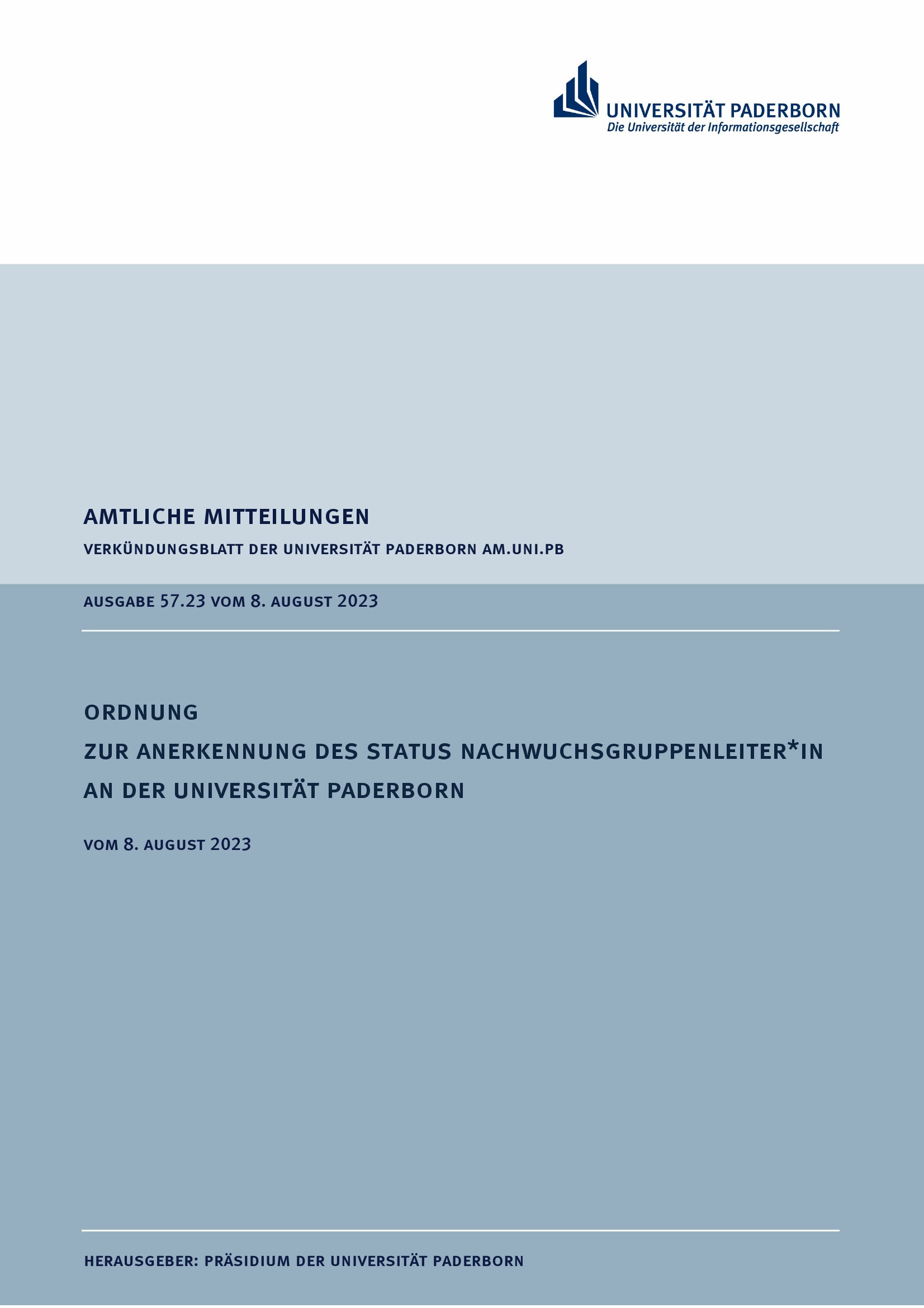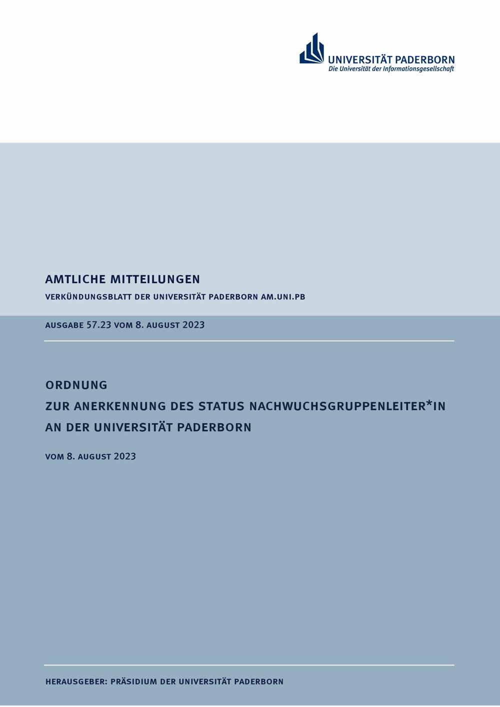 Ordnung zur Anerkennung des Status Nachwuchsgruppenleiter*in an der Universität Paderborn : vom 8. August 2023