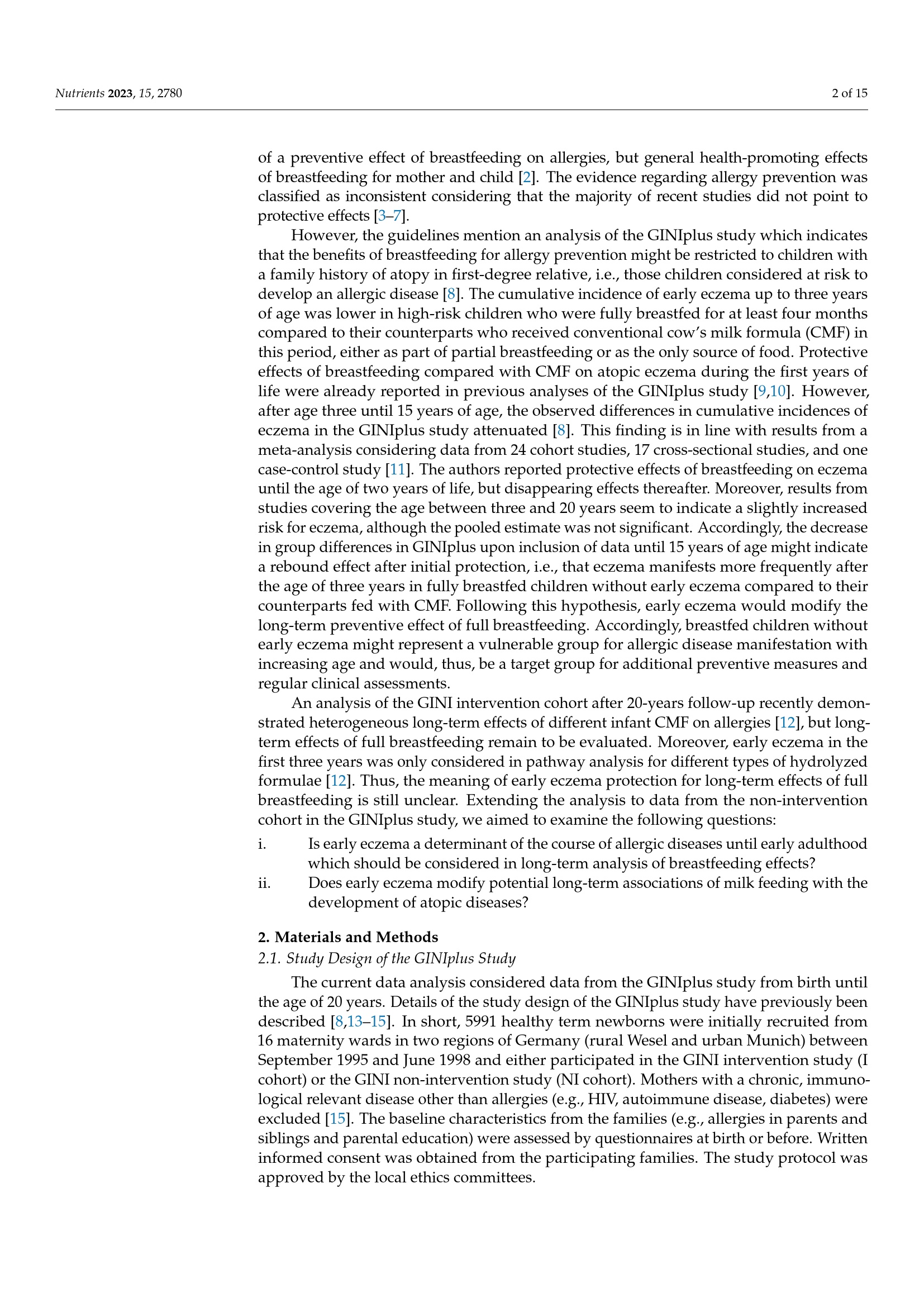 Full breastfeeding and allergic diseaseslong-term protection or rebound effects? : Lars Libuda, Birgit Filipiak-Pittroff , Marie Standl, Tamara Schikowski, Andrea von Berg, Sibylle Koletzko, Carl-Peter Bauer, Joachim Heinrich, Dietrich Berdel and Monika Gappa