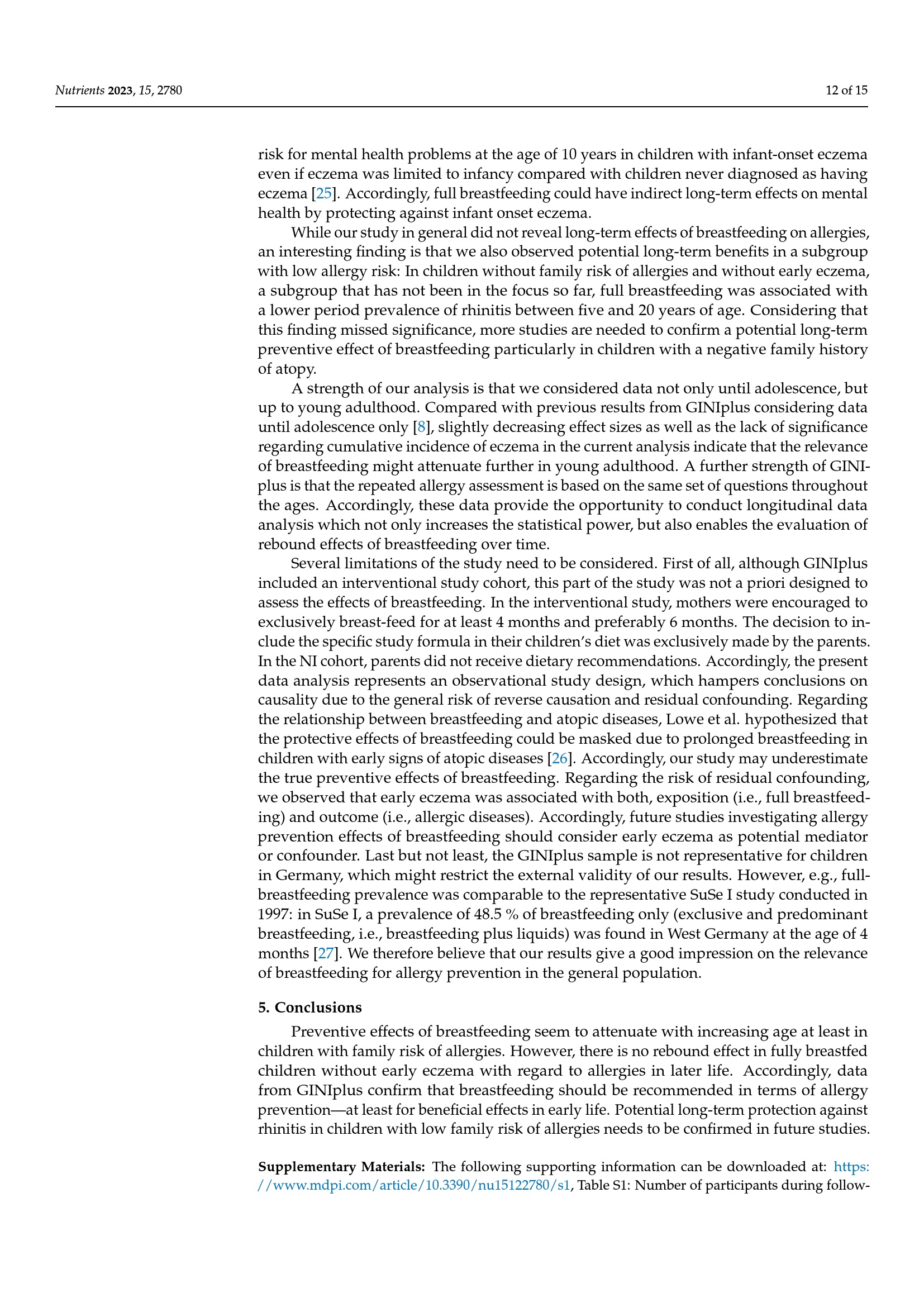 Full breastfeeding and allergic diseaseslong-term protection or rebound effects? : Lars Libuda, Birgit Filipiak-Pittroff , Marie Standl, Tamara Schikowski, Andrea von Berg, Sibylle Koletzko, Carl-Peter Bauer, Joachim Heinrich, Dietrich Berdel and Monika Gappa