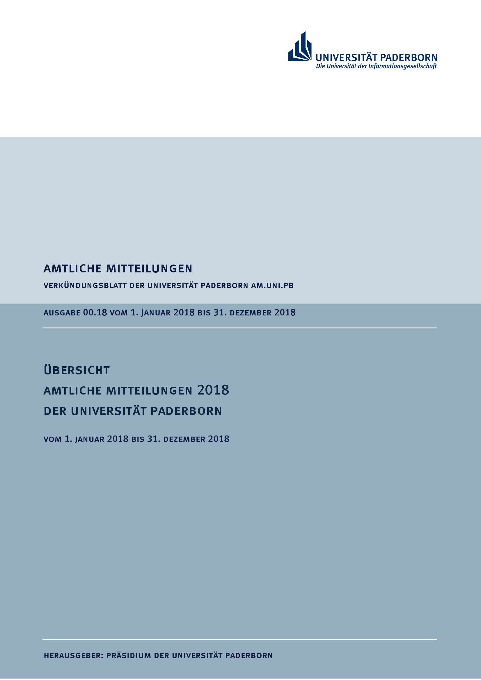 Übersicht Amtliche Mitteilungen 2018 der Universität Paderborn : vom 1. Januar 2018 bis 31. Dezember 2018