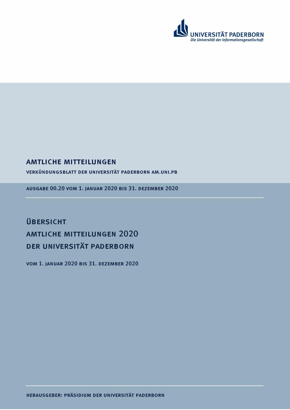 Übersicht Amtliche Mitteilungen 2020 der Universität Paderborn : vom 1. Januar 2020 bis 31. Dezember 2020
