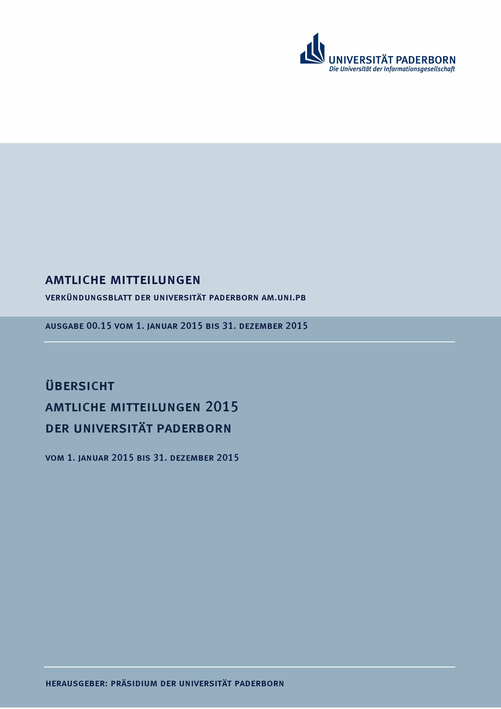Übersicht Amtliche Mitteilungen 2015 der Universität Paderborn : vom 1. Januar 2015 bis 31. Dezember 2015