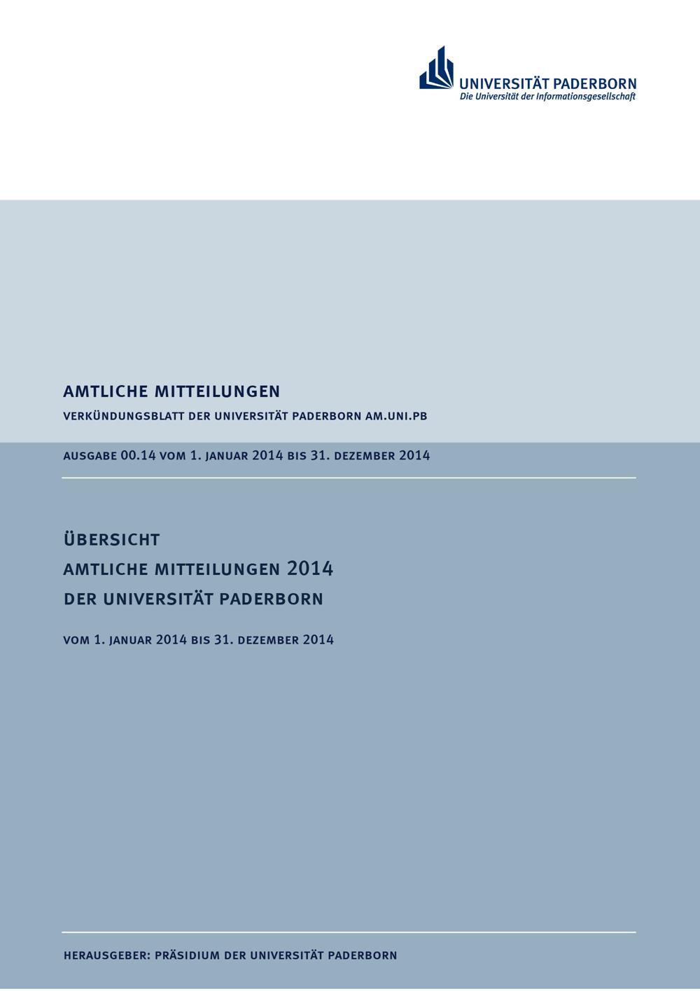 Übersicht Amtliche Mitteilungen 2014 der Universität Paderborn : vom 1. Januar 2014 bis 31. Dezember 2014