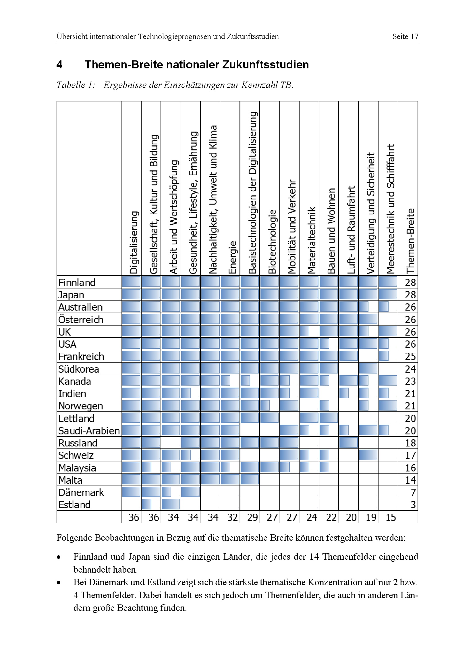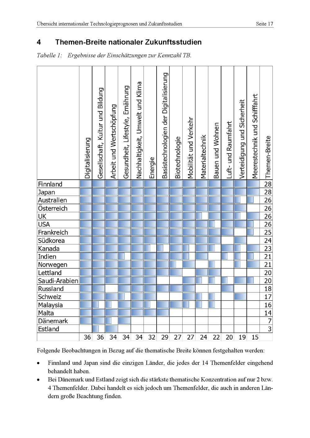 4 Themen-Breite nationaler Zukunftsstudien