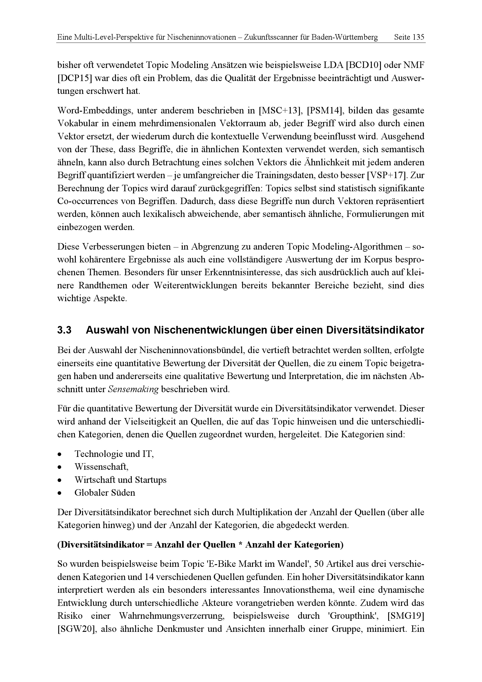 3.3 Auswahl von Nischenentwicklungen über einen Diversitätsindikator