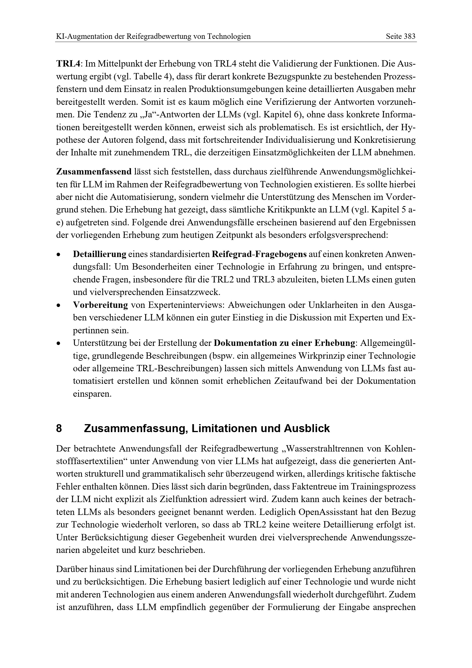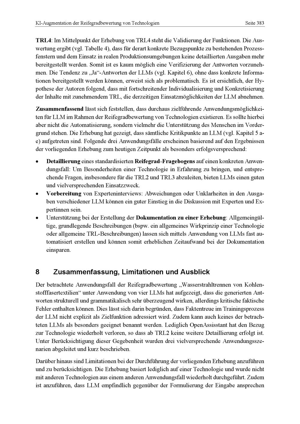 8 Zusammenfassung, Limitationen und Ausblick
