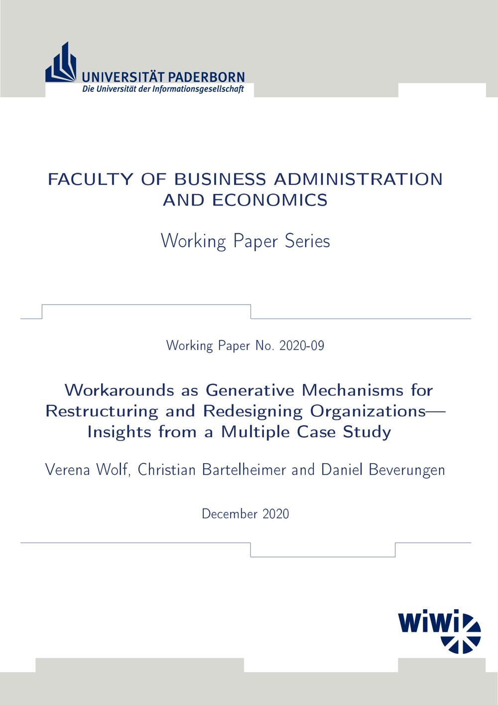 Workarounds as generative mechanisms for restructuring and redesigning organizations : insights from a multiple case study / Verena Wolf, Christian Bartelheimer and Daniel Beverungen