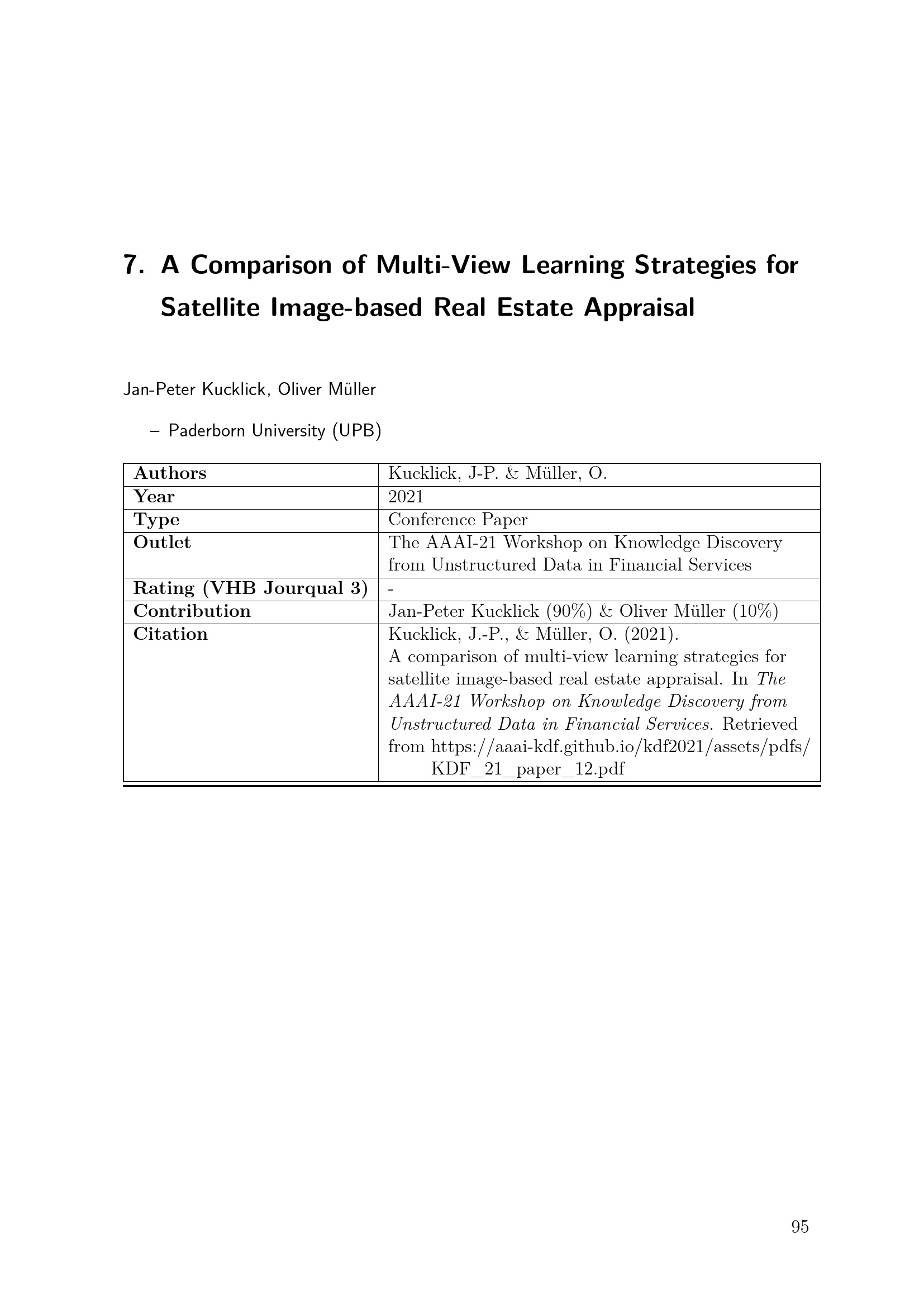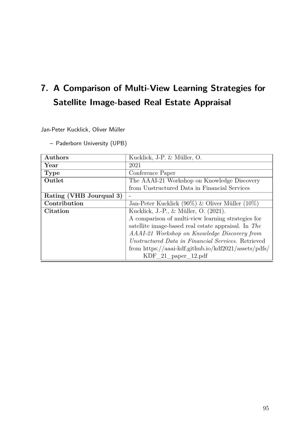 Multi-view learning and explainable artificial intelligence for real estate appraisal : von Jan-Peter Kucklick