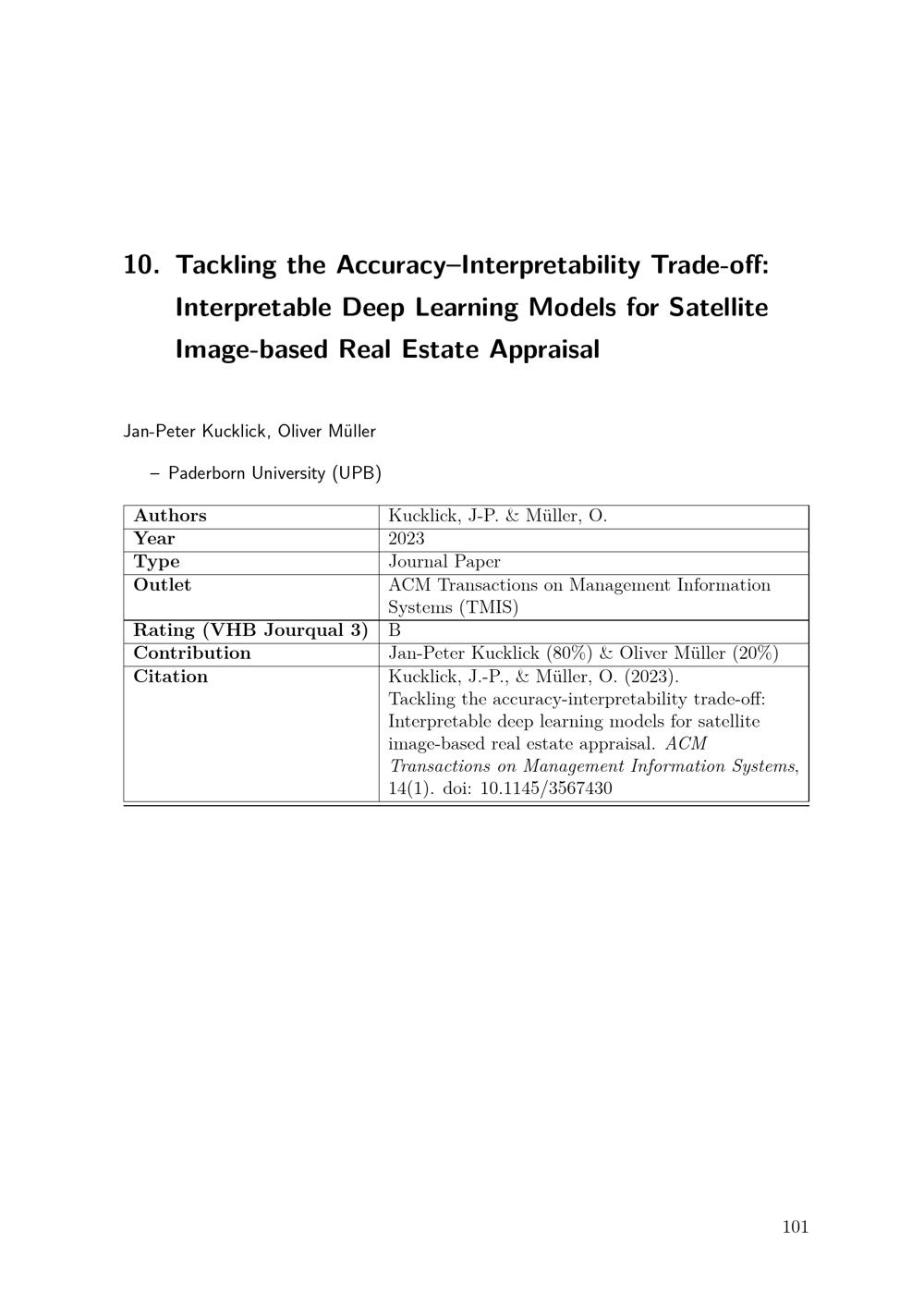 Multi-view learning and explainable artificial intelligence for real estate appraisal : von Jan-Peter Kucklick