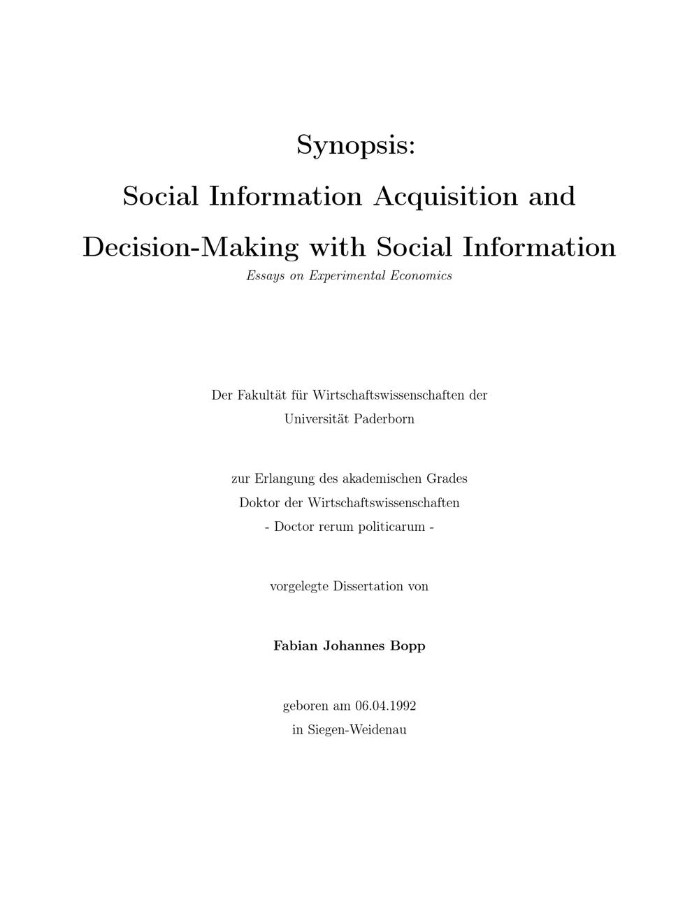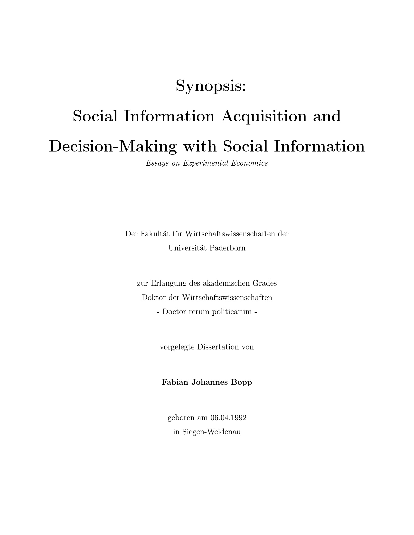 Social information acquisition and decision-making with social information : essays on experimental economics : Synopsis / Fabian Johannes Bopp