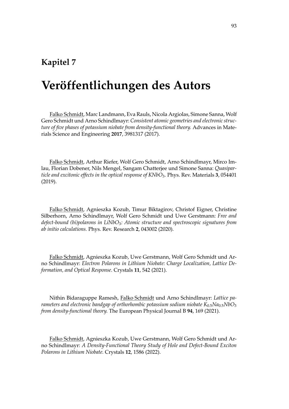Elektronische und optische Eigenschaften von Alkaliniobaten berechnet innerhalb der Dichtefunktionaltheorie / Autor: M.Sc. Falko Schmidt ; Erstgutachter: Prof. Dr. Arno Schindlmayr, Zweitgutachter: Prof. Dr. Wolf Gero Schmidt