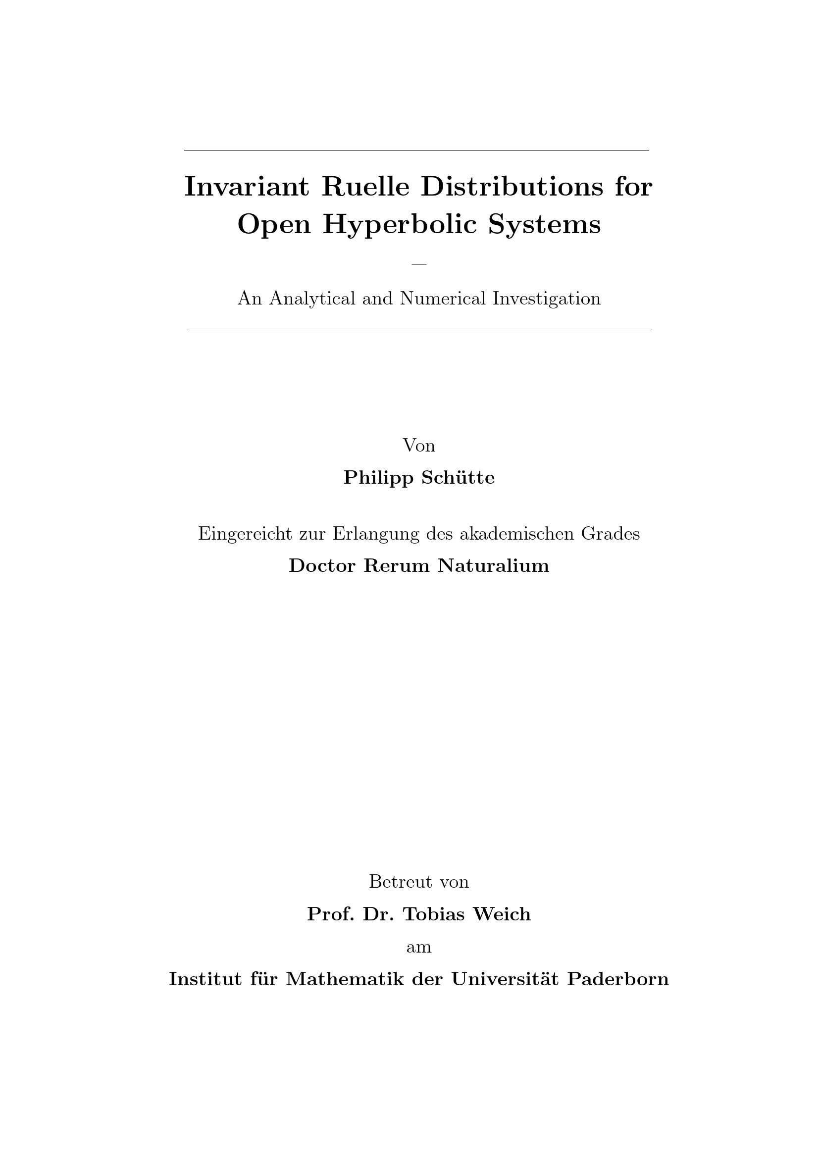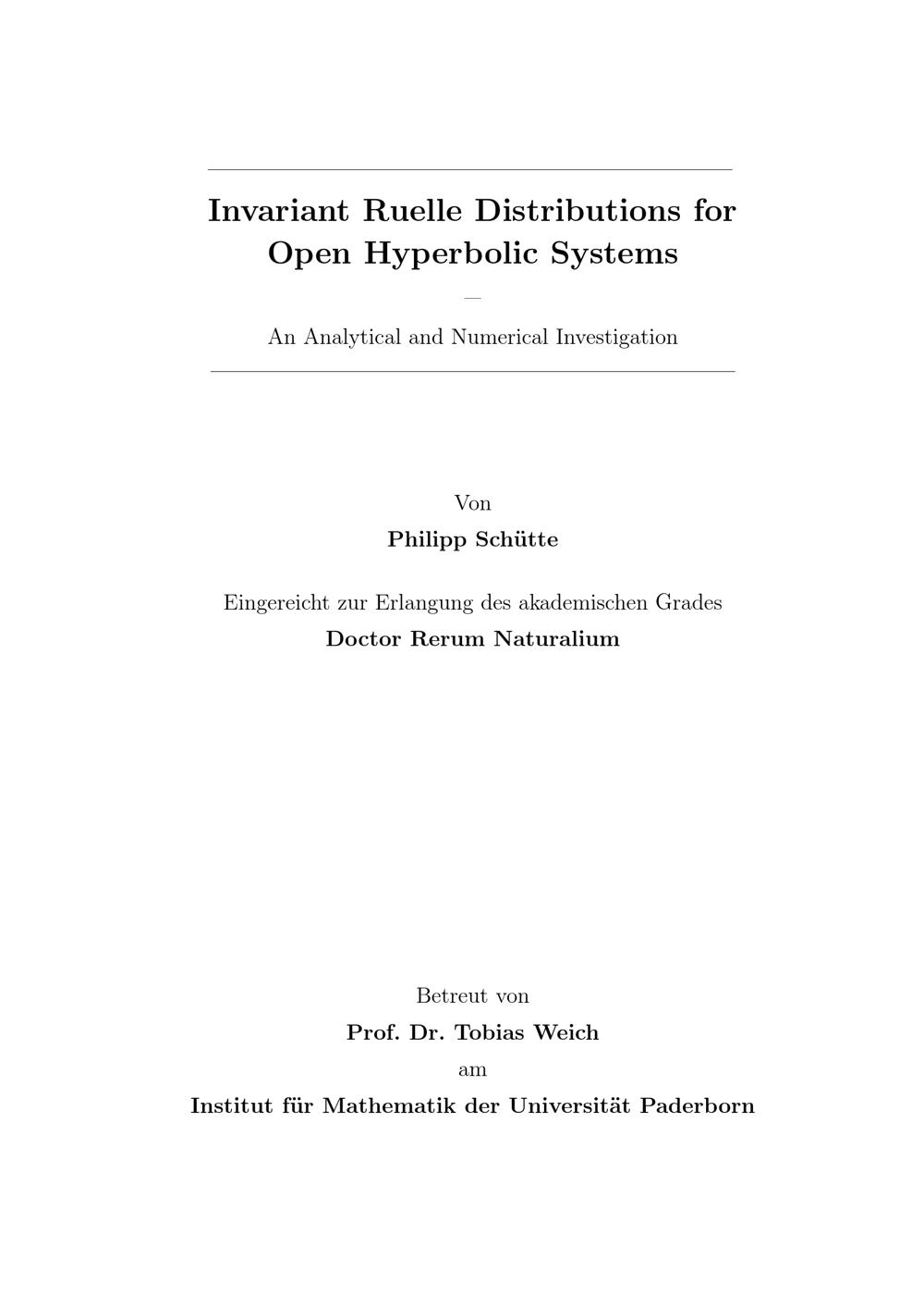 Invariant ruelle distributions for open hyperbolic systems : an analytical and numerical investigation / von Philipp Schütte ; betreut von Prof. Dr. Tobias Weich