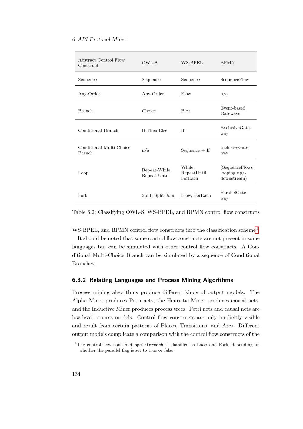 Discoverable Control Flow Constructs through Process Mining