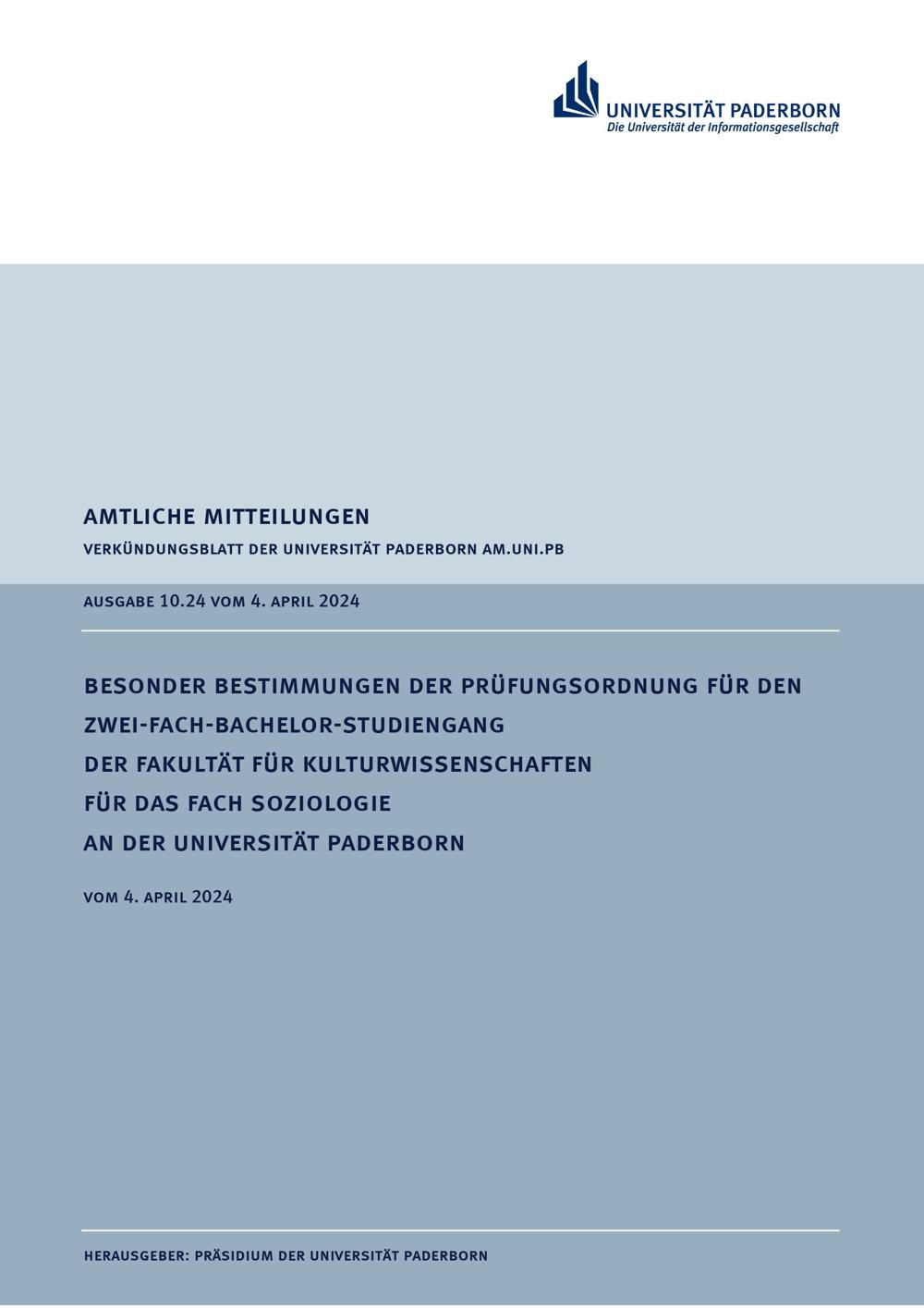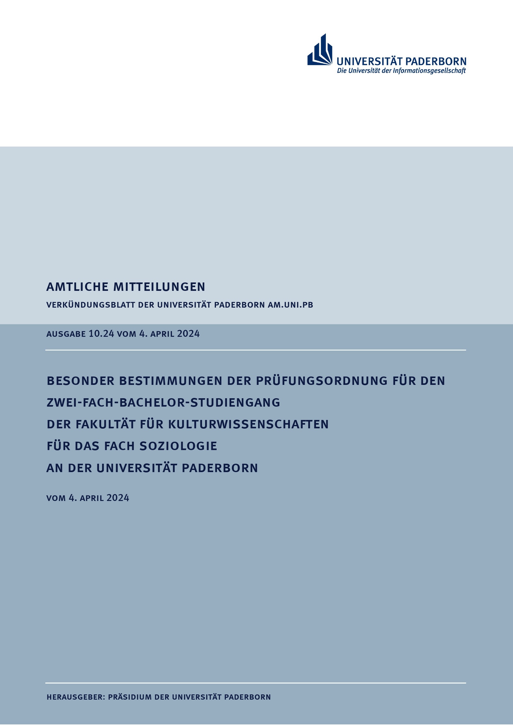 Besondere Bestimmungen der Prüfungsordnung für den Zwei-Fach-Bachelor-Studiengang der Fakultät für Kulturwissenschaften für das Fach Soziologie an der Universität Paderborn : vom 4. April 2024