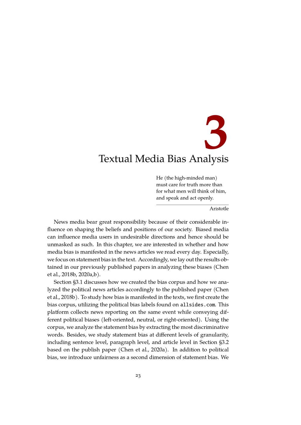 Computational analysis and mitigation of textual media bias / Wei-Fan Chen ; [Reviewers: Prof. Dr. Henning Wachsmuth, Leibniz University Hannover, Prof. Dr. Benno Stein, Bauhaus Universität Weimar]