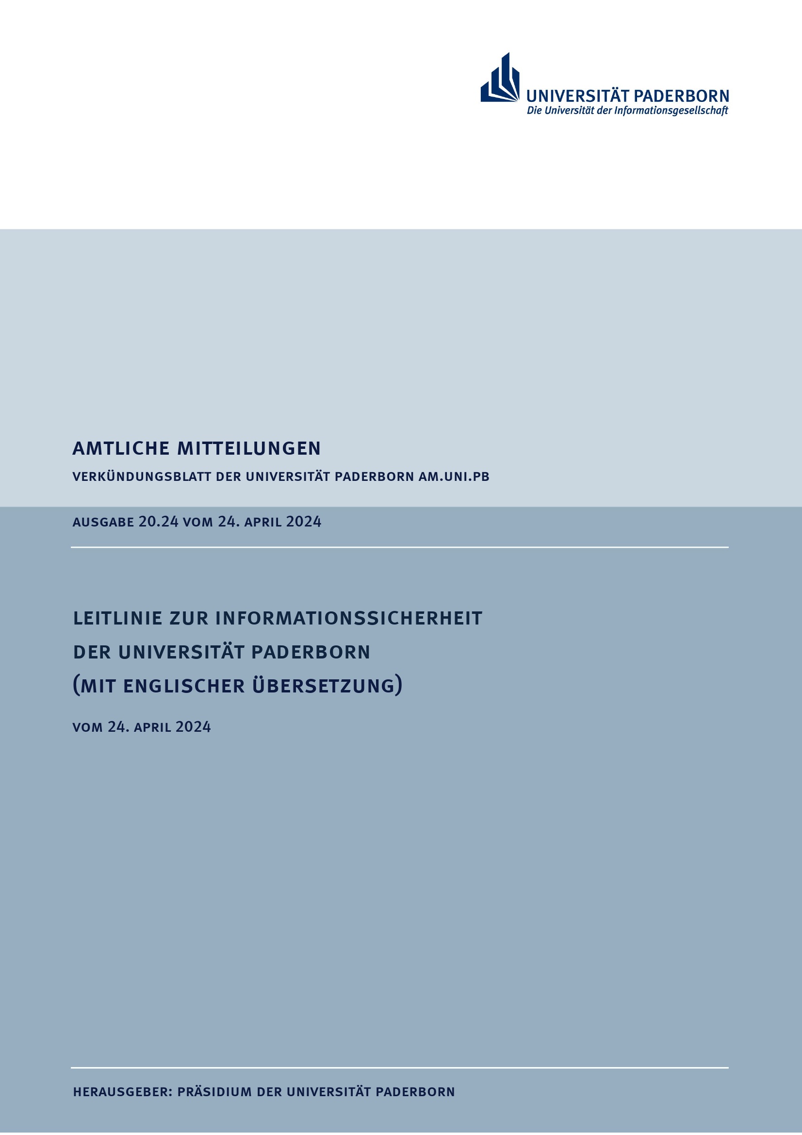 Leitlinie zur Informationssicherheit der Universität Paderborn (mit englischer Übersetzung) : vom 24. April 2024
