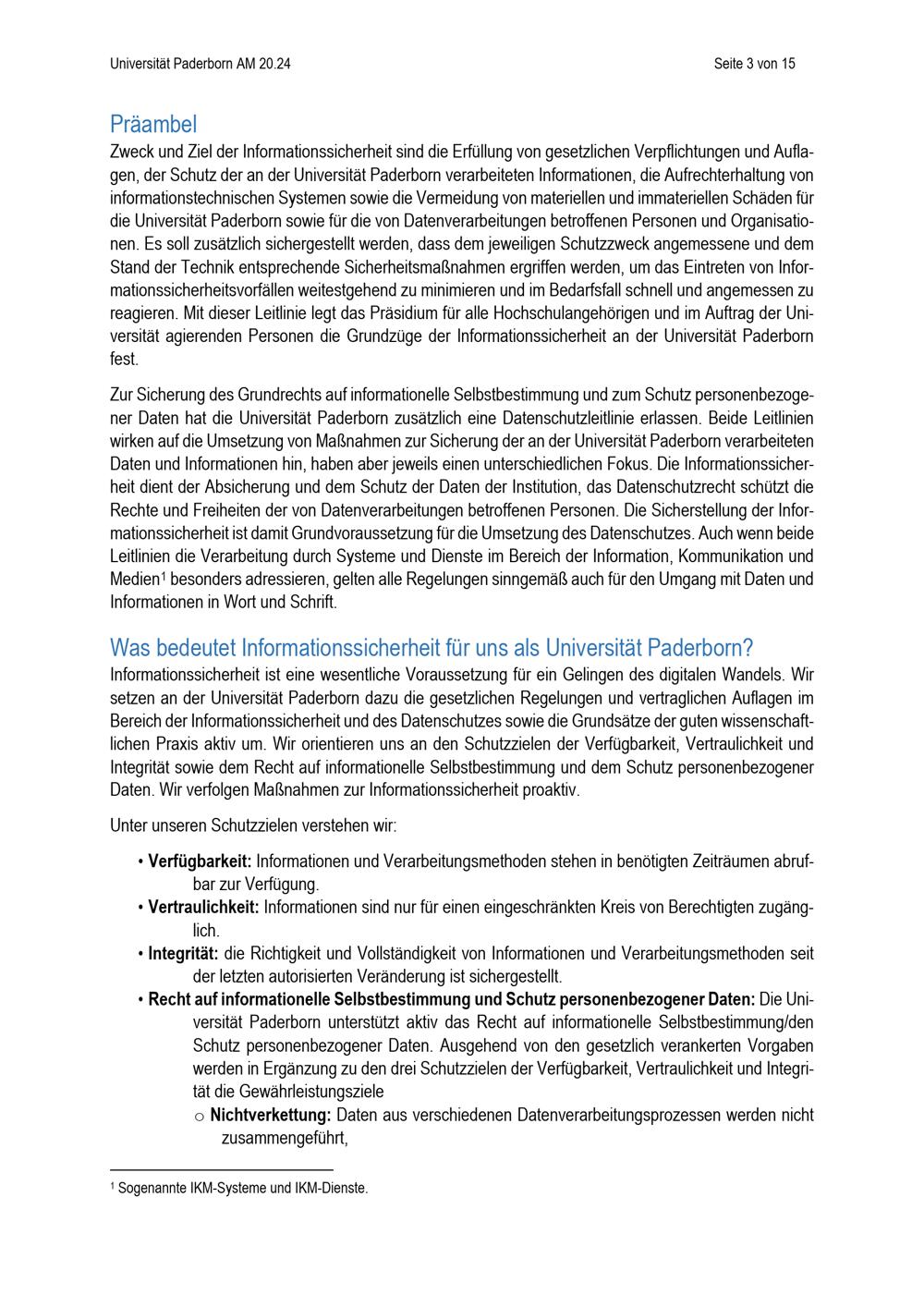 Leitlinie zur Informationssicherheit der Universität Paderborn (mit englischer Übersetzung) : vom 24. April 2024