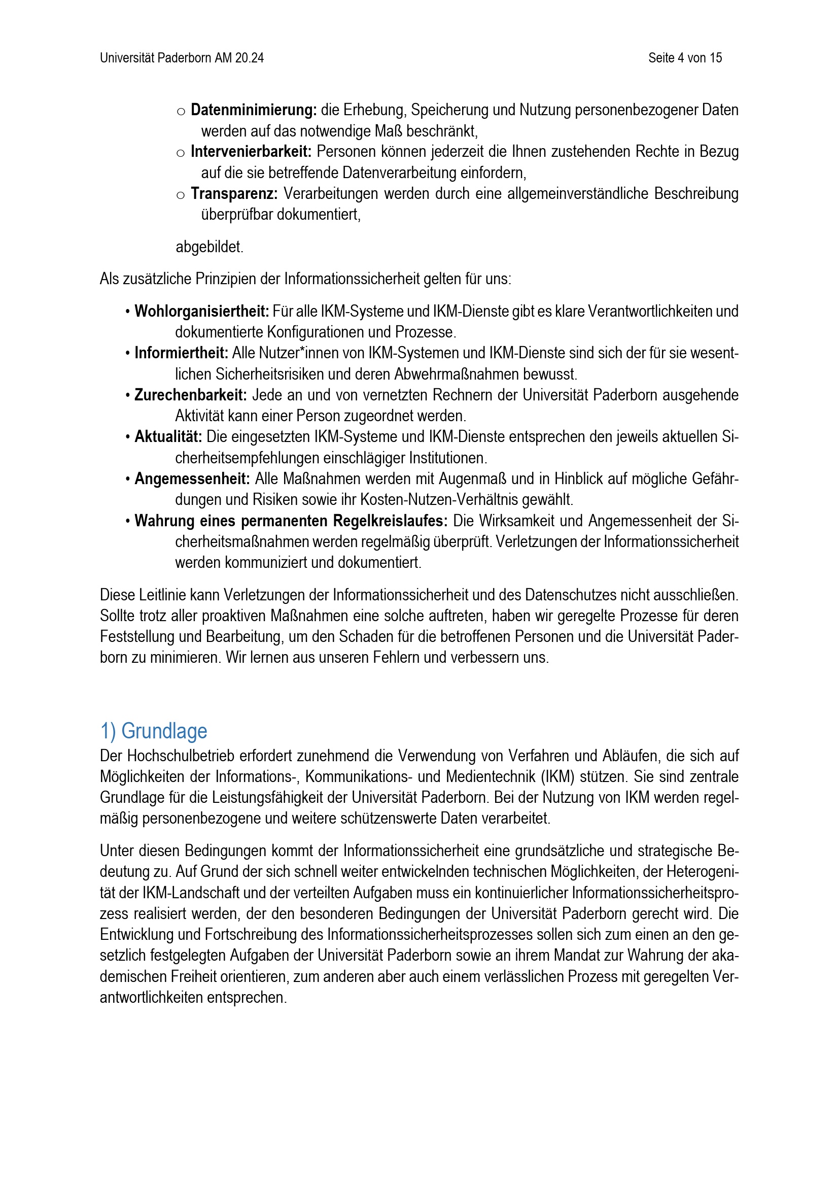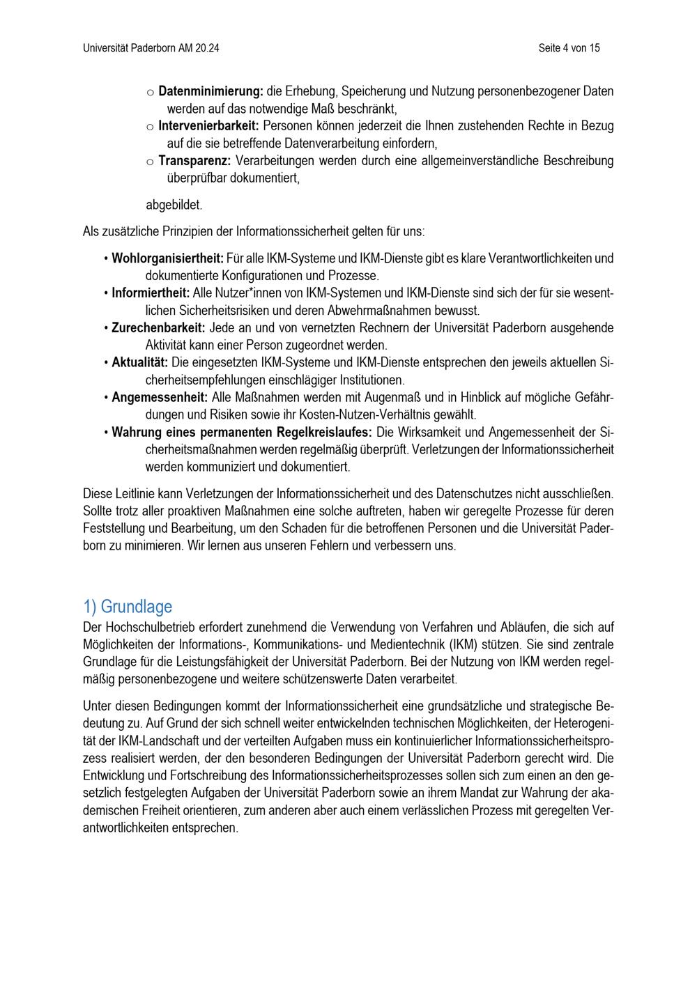 Leitlinie zur Informationssicherheit der Universität Paderborn (mit englischer Übersetzung) : vom 24. April 2024