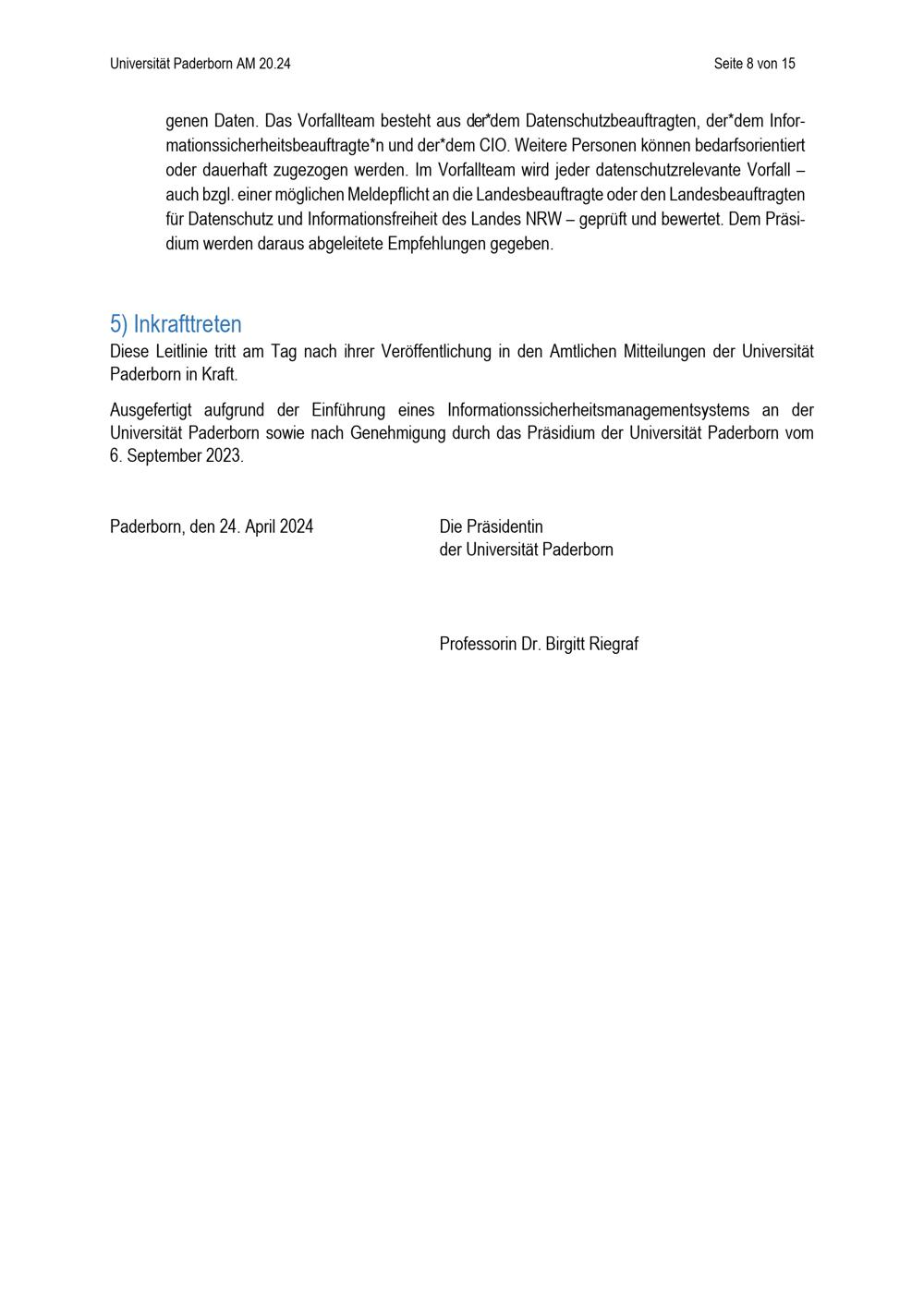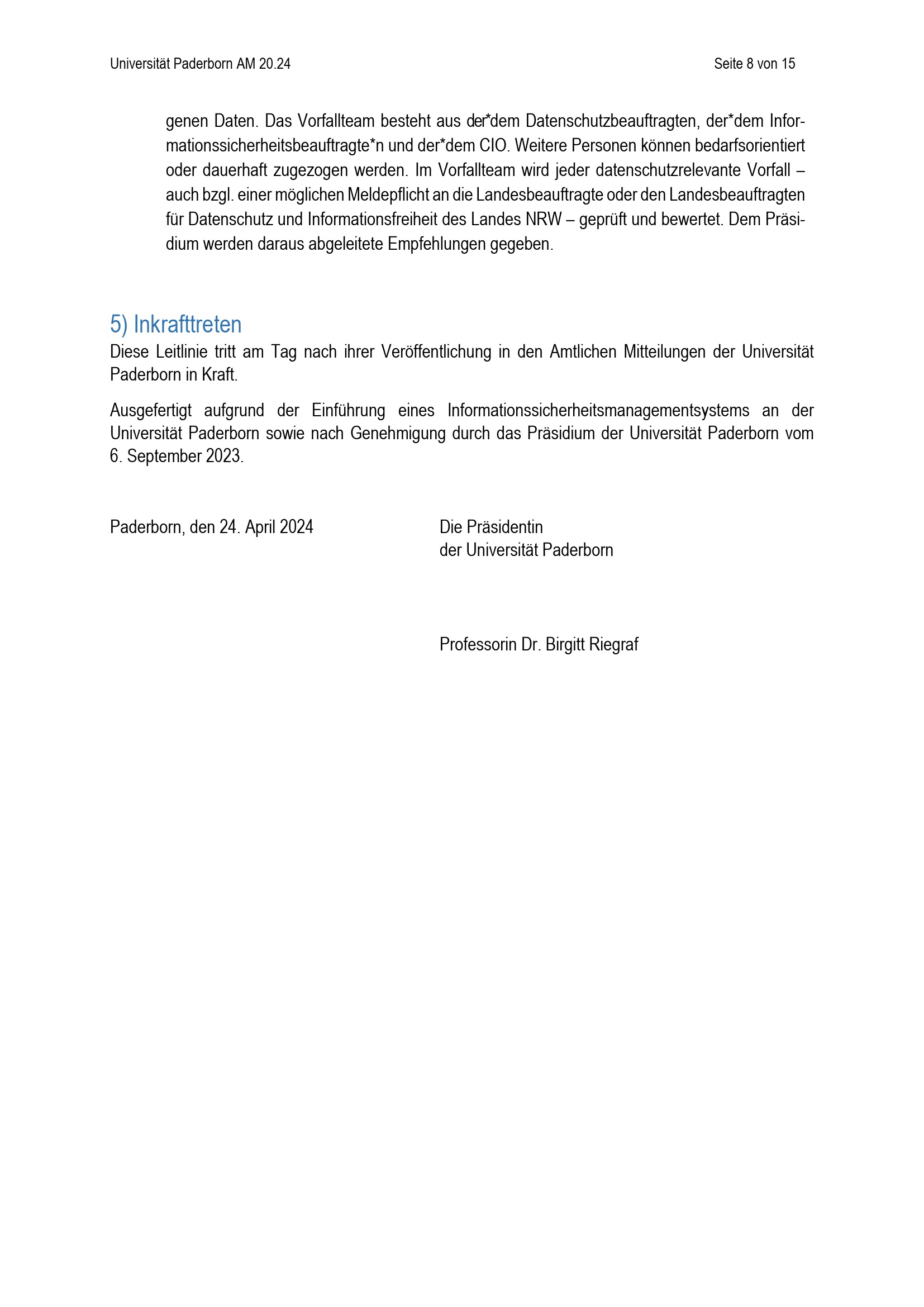 Leitlinie zur Informationssicherheit der Universität Paderborn (mit englischer Übersetzung) : vom 24. April 2024
