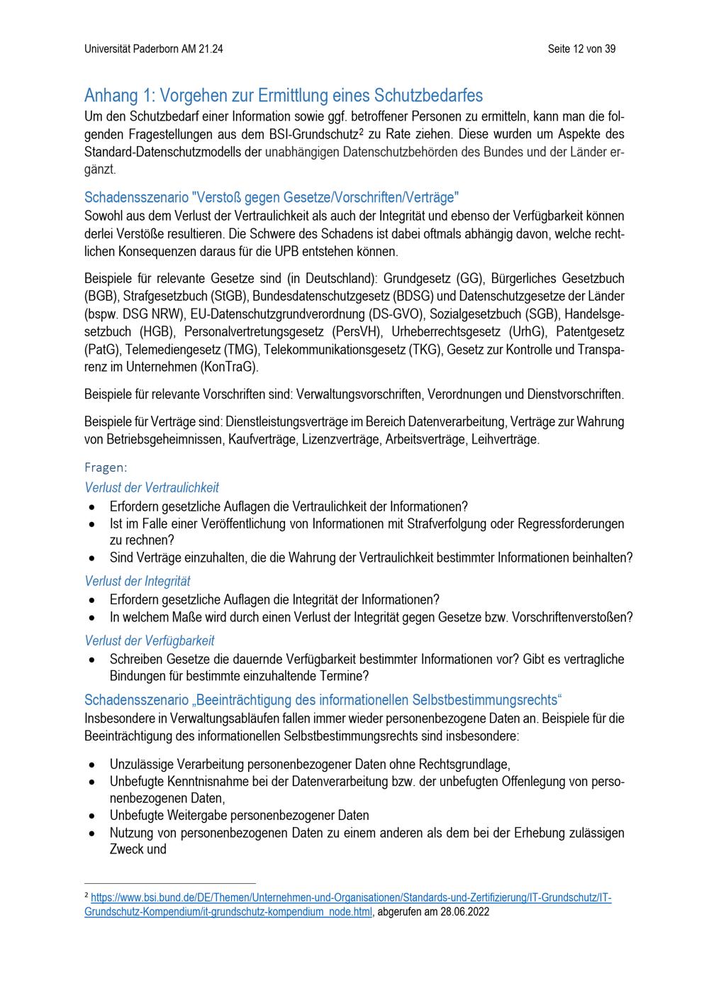 Richtlinie zur Einordnung des Schutzbedarfs von Informationen unter Berücksichtigung des Schutzes personenbezogener Daten der Universität Paderborn (mit englischer Übersetzung) : vom 24. April 2024