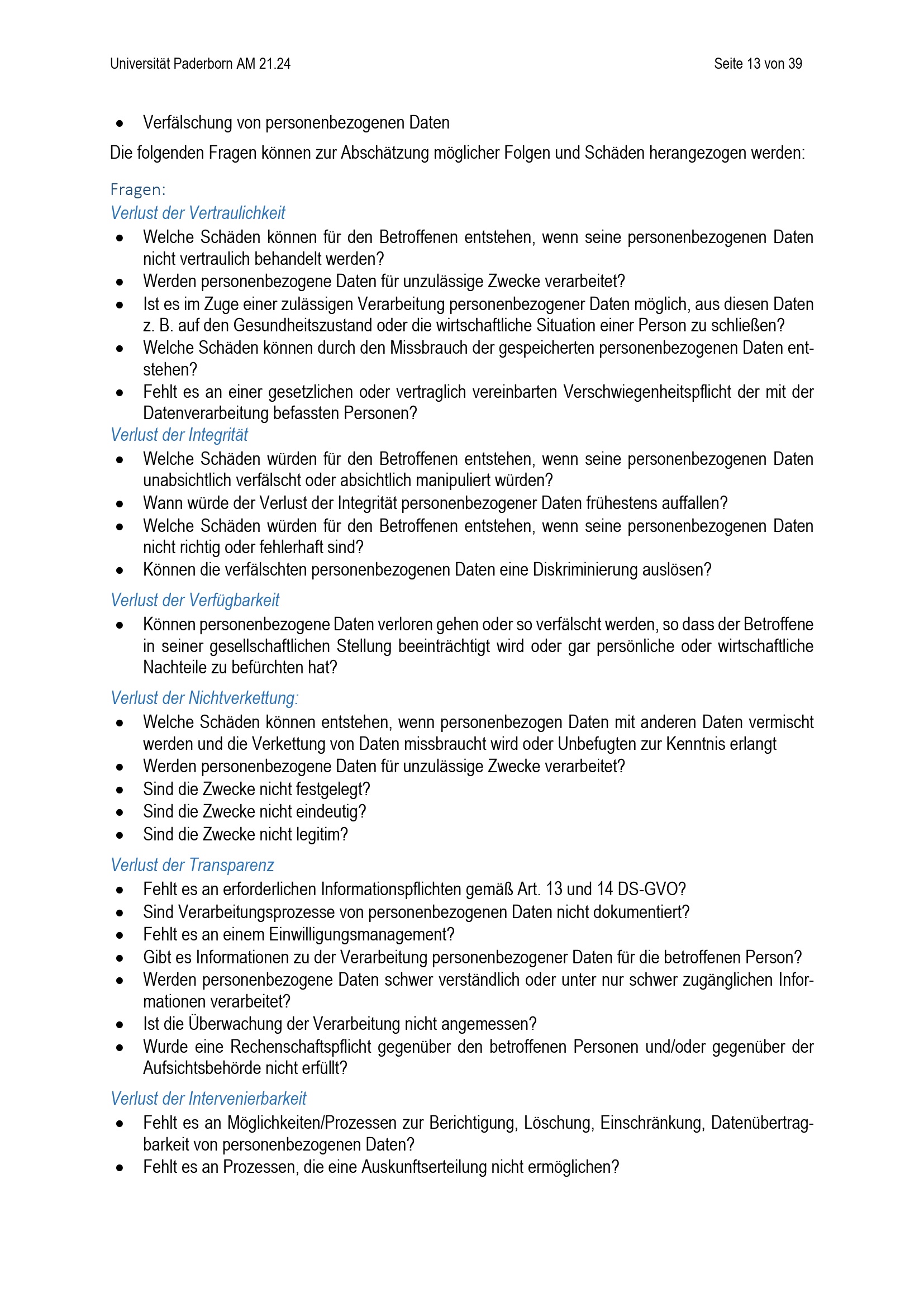 Richtlinie zur Einordnung des Schutzbedarfs von Informationen unter Berücksichtigung des Schutzes personenbezogener Daten der Universität Paderborn (mit englischer Übersetzung) : vom 24. April 2024