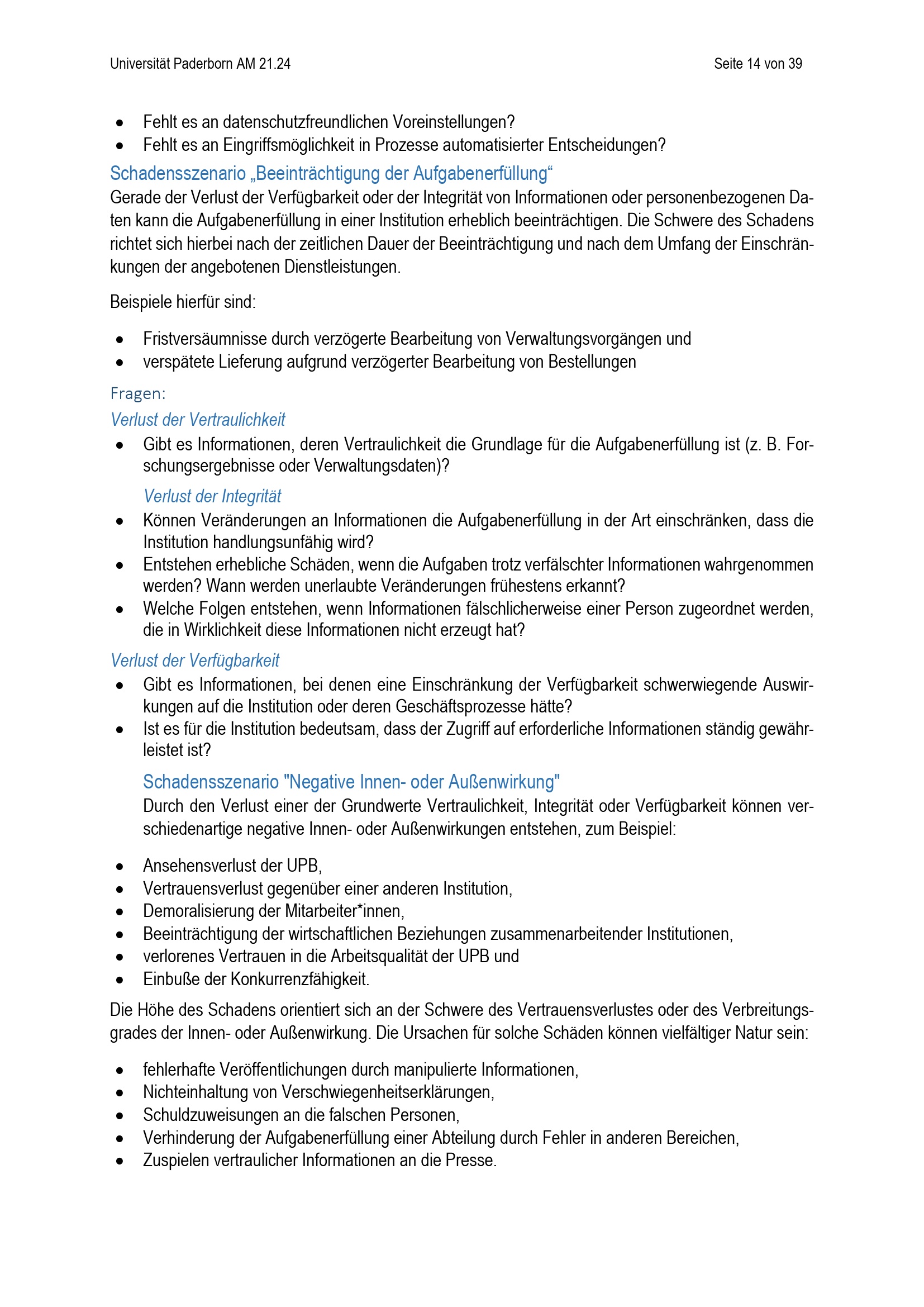 Schadensszenario „Beeinträchtigung der Aufgabenerfüllung“