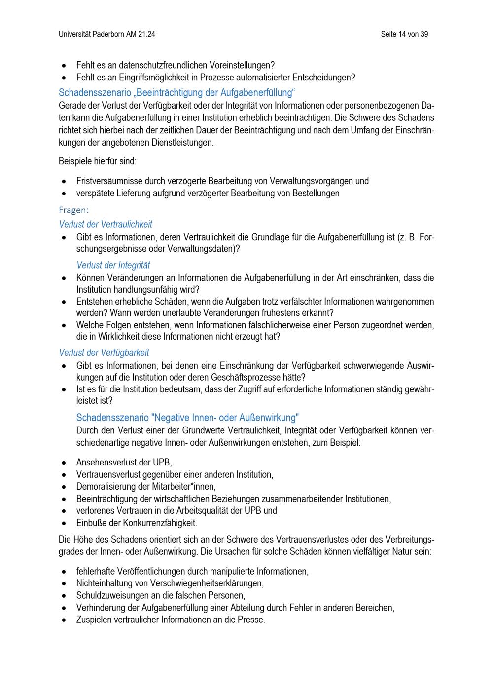 Richtlinie zur Einordnung des Schutzbedarfs von Informationen unter Berücksichtigung des Schutzes personenbezogener Daten der Universität Paderborn (mit englischer Übersetzung) : vom 24. April 2024
