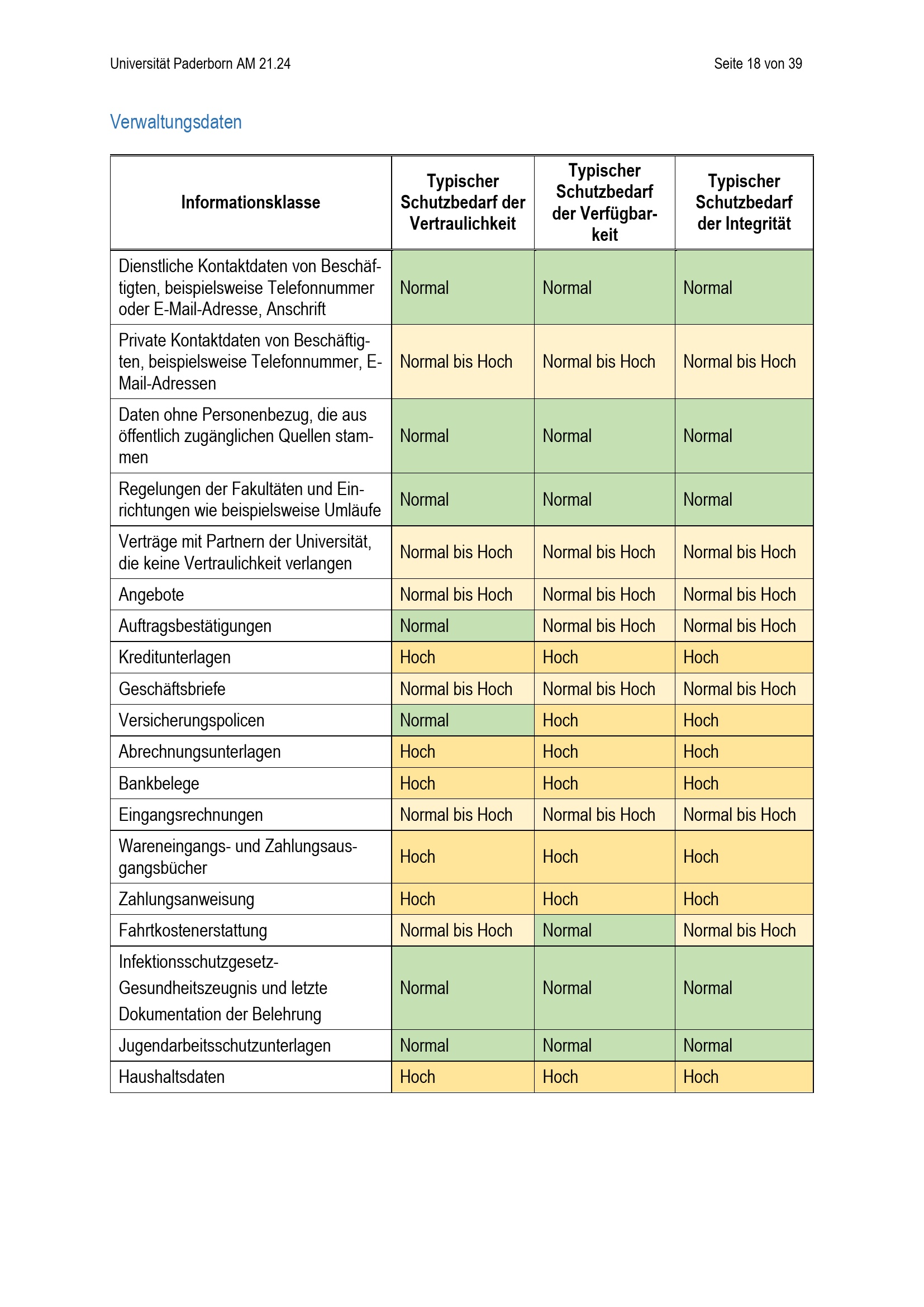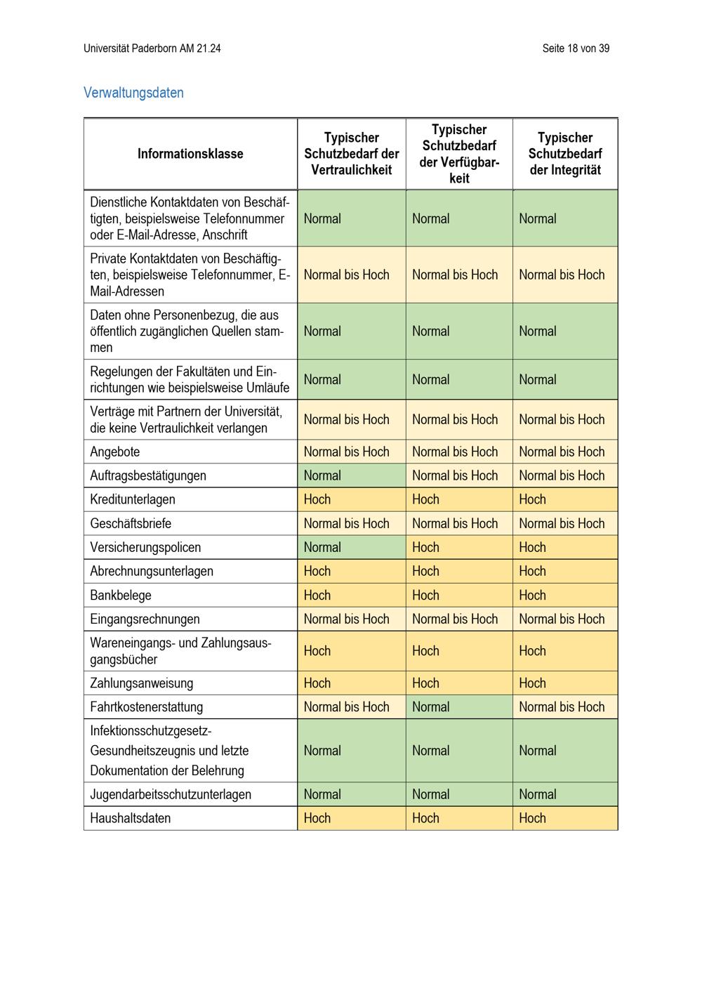 Richtlinie zur Einordnung des Schutzbedarfs von Informationen unter Berücksichtigung des Schutzes personenbezogener Daten der Universität Paderborn (mit englischer Übersetzung) : vom 24. April 2024