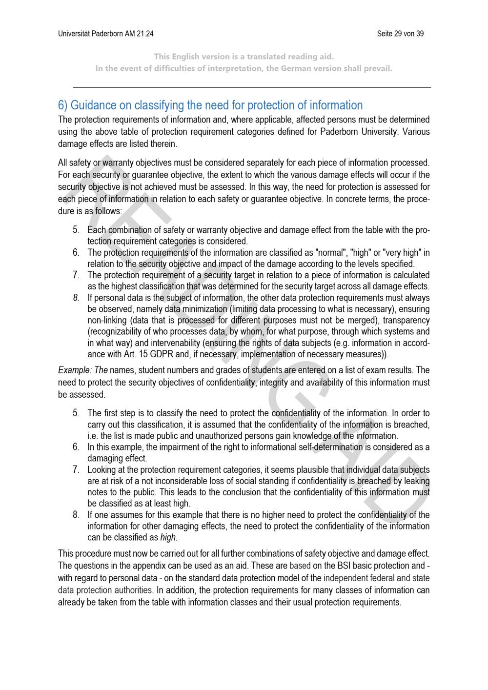 Richtlinie zur Einordnung des Schutzbedarfs von Informationen unter Berücksichtigung des Schutzes personenbezogener Daten der Universität Paderborn (mit englischer Übersetzung) : vom 24. April 2024
