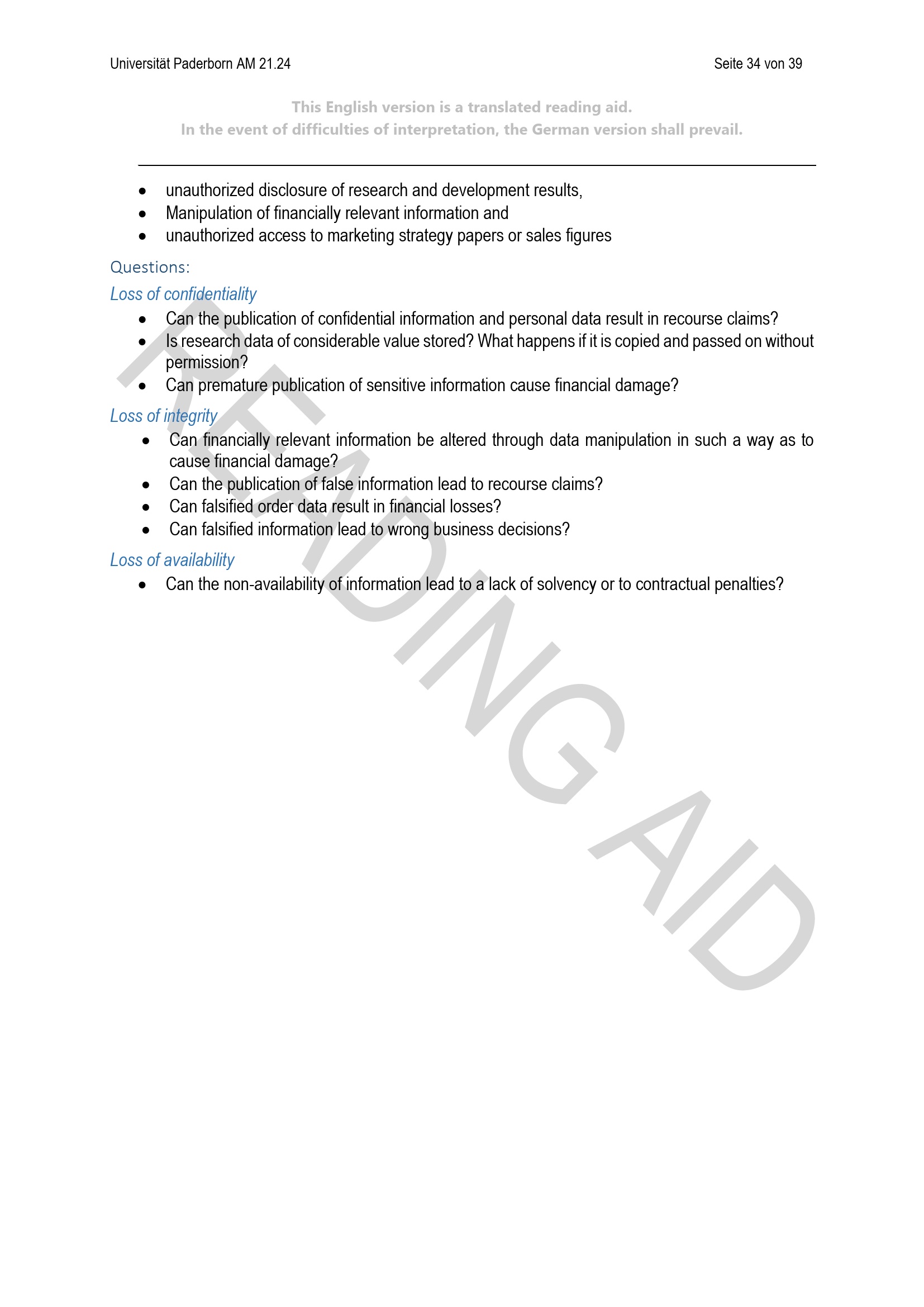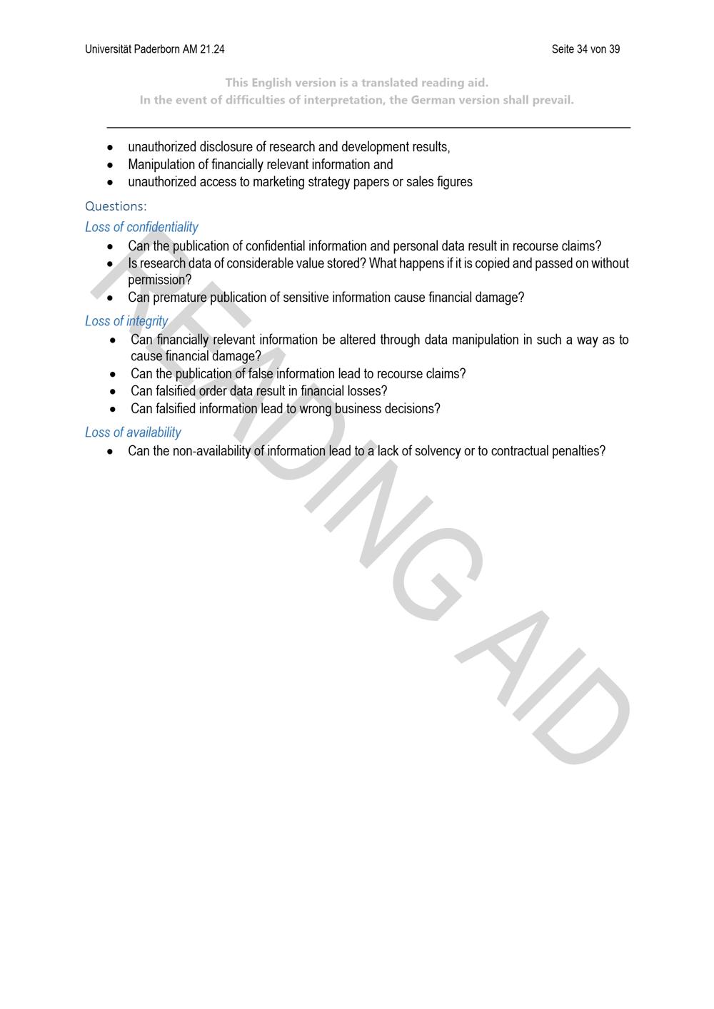 Richtlinie zur Einordnung des Schutzbedarfs von Informationen unter Berücksichtigung des Schutzes personenbezogener Daten der Universität Paderborn (mit englischer Übersetzung) : vom 24. April 2024