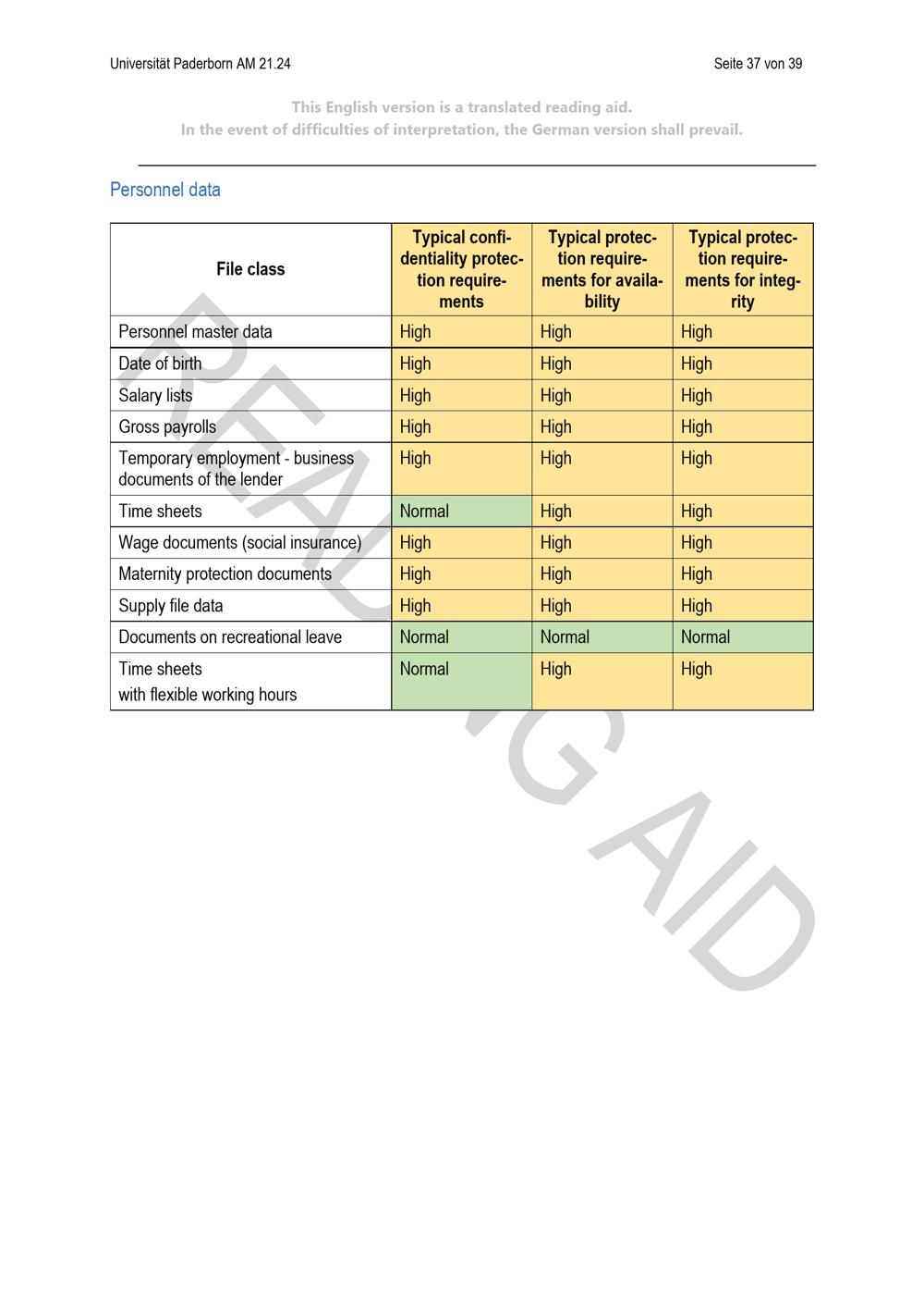 Richtlinie zur Einordnung des Schutzbedarfs von Informationen unter Berücksichtigung des Schutzes personenbezogener Daten der Universität Paderborn (mit englischer Übersetzung) : vom 24. April 2024