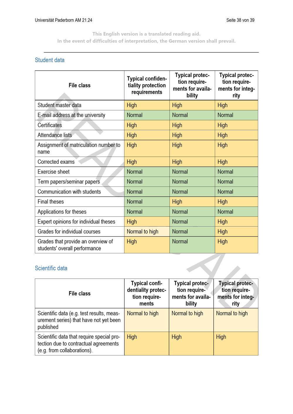 Richtlinie zur Einordnung des Schutzbedarfs von Informationen unter Berücksichtigung des Schutzes personenbezogener Daten der Universität Paderborn (mit englischer Übersetzung) : vom 24. April 2024