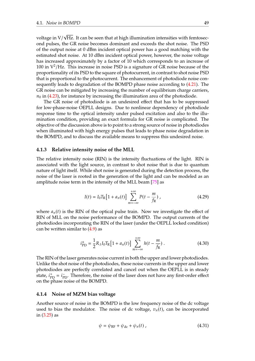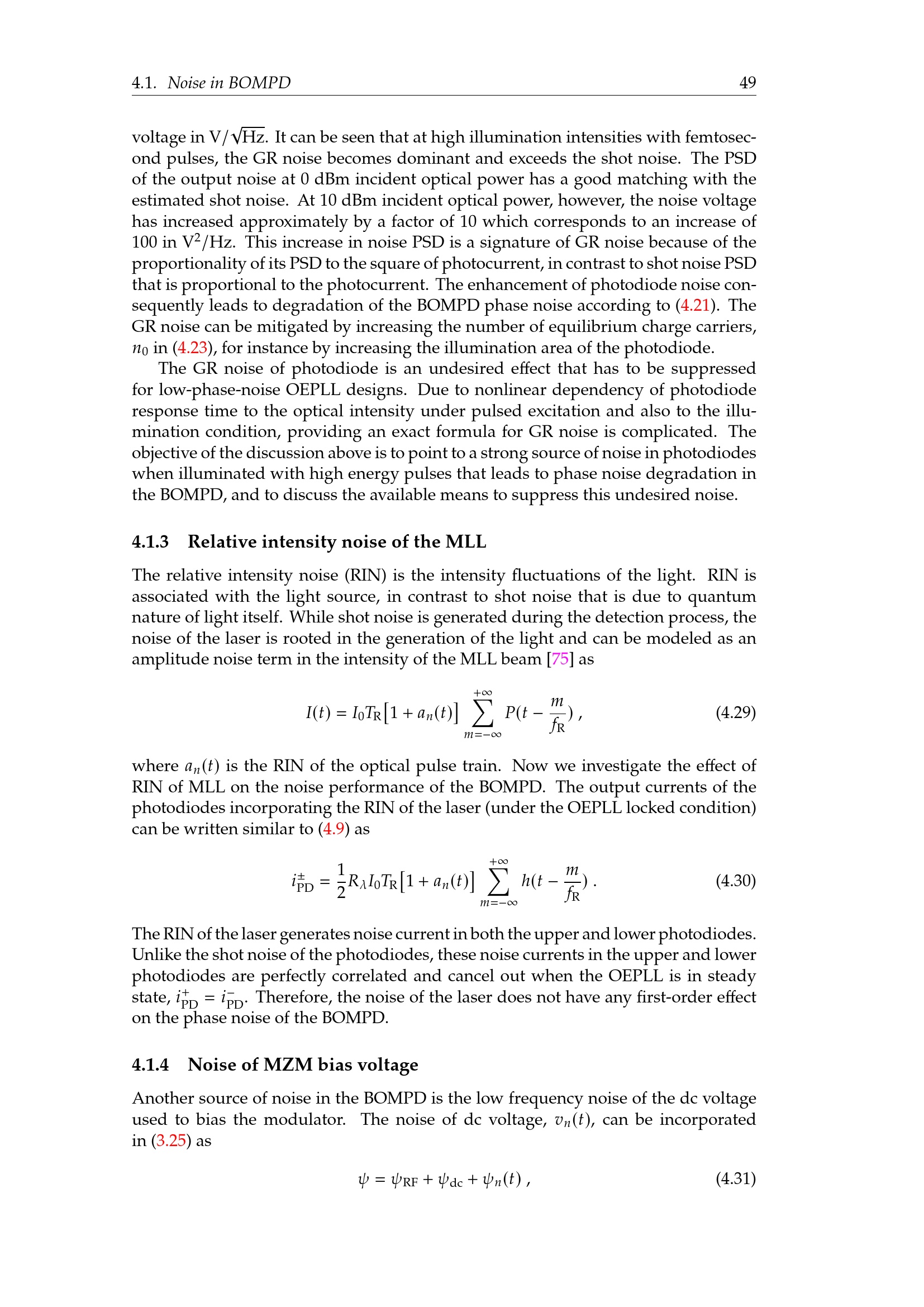 Relative intensity noise of the MLL