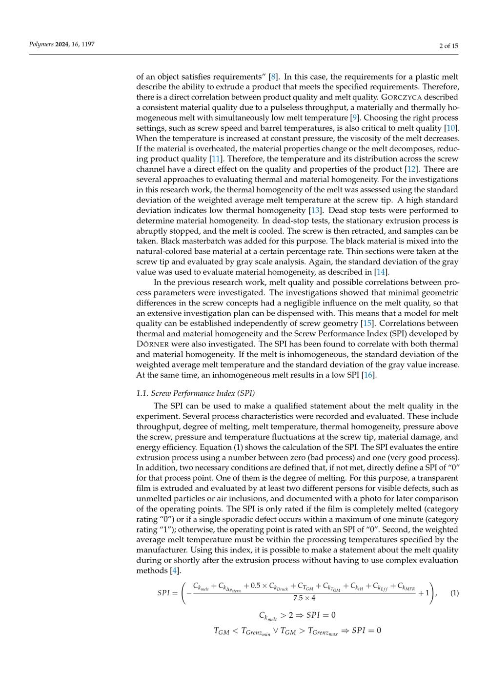 Screw Performance Index (SPI)