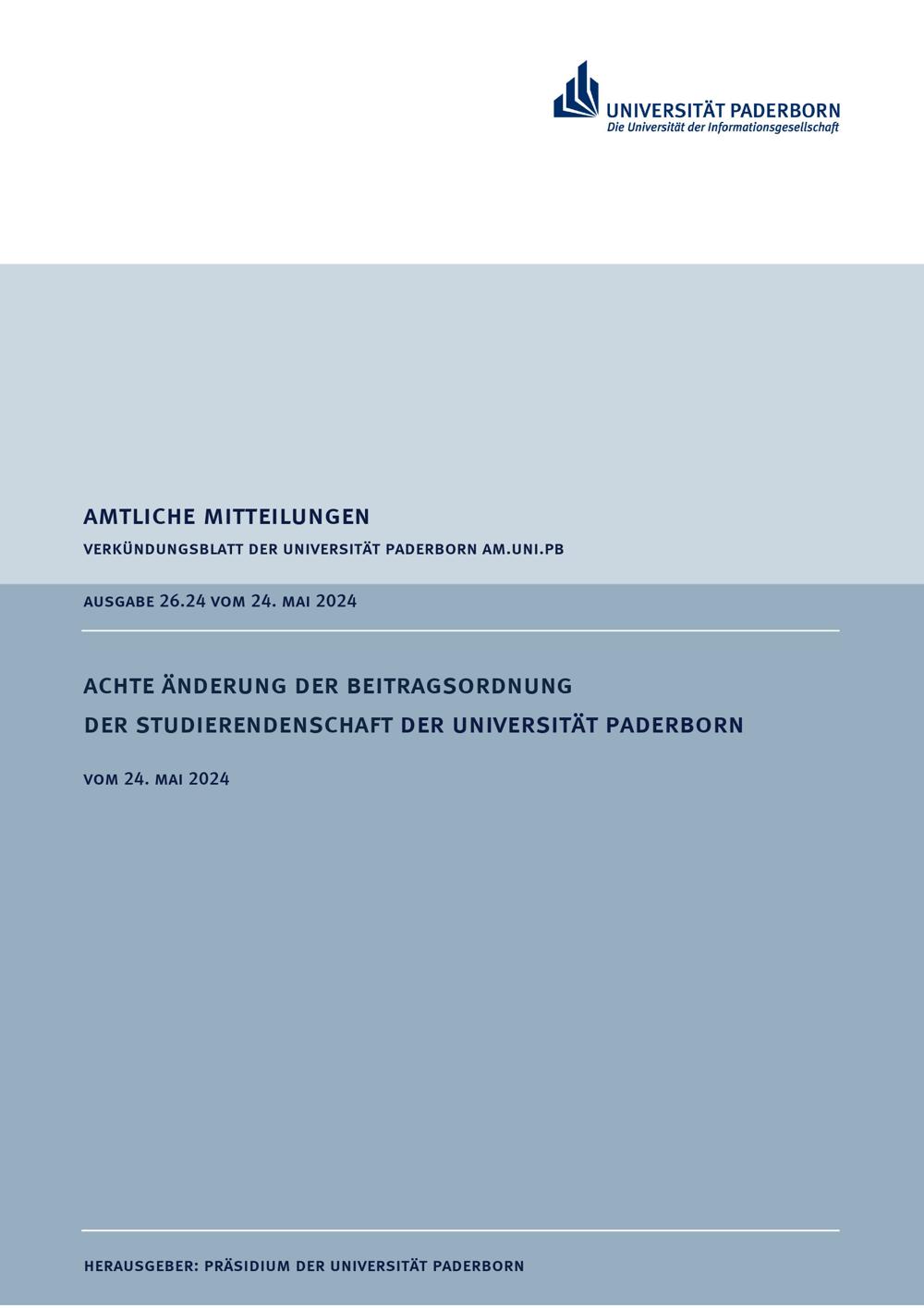 Achte Änderung der Beitragsordnung der Studierendenschaft der Universität Paderborn : vom 24. Mai 2024