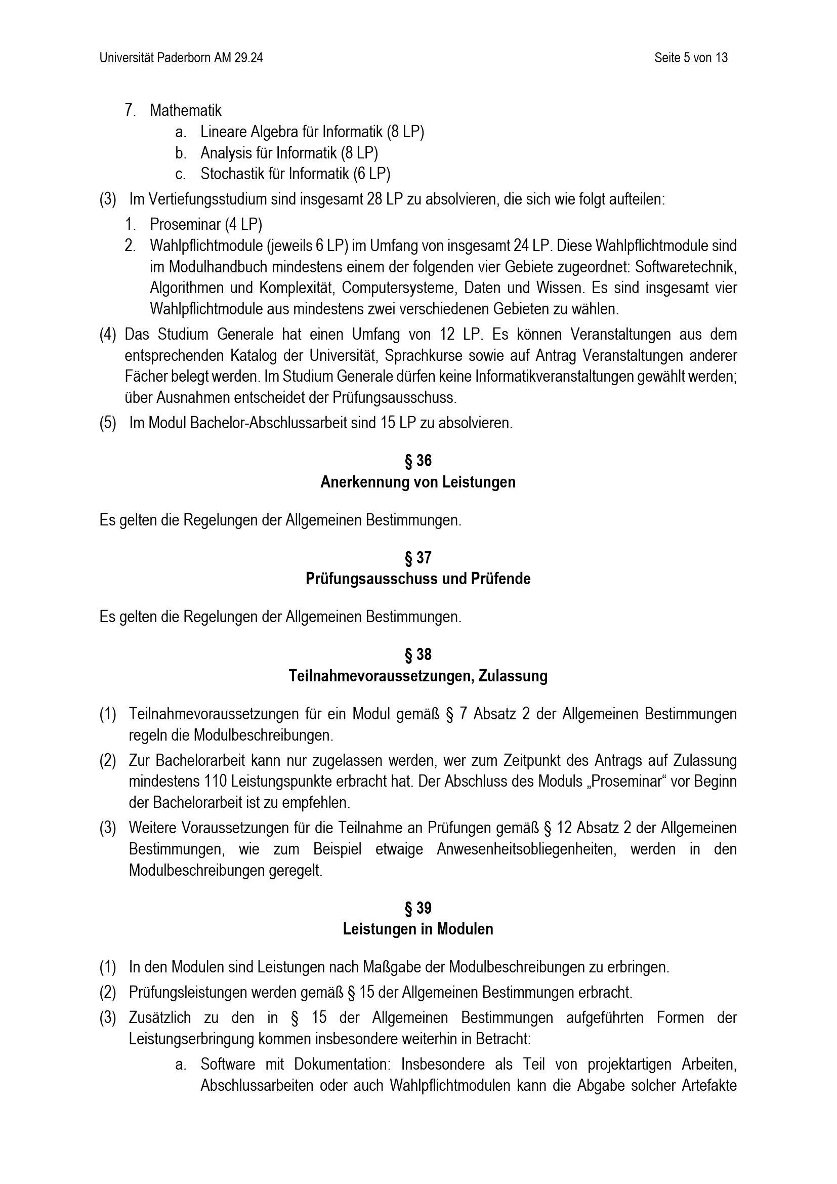 Besondere Bestimmungen der Prüfungsordnung für den Bachelorstudiengang Informatik der Fakultät für Elektrotechnik, Informatik und Mathematik an der Universität Paderborn : vom 24. Mai 2024