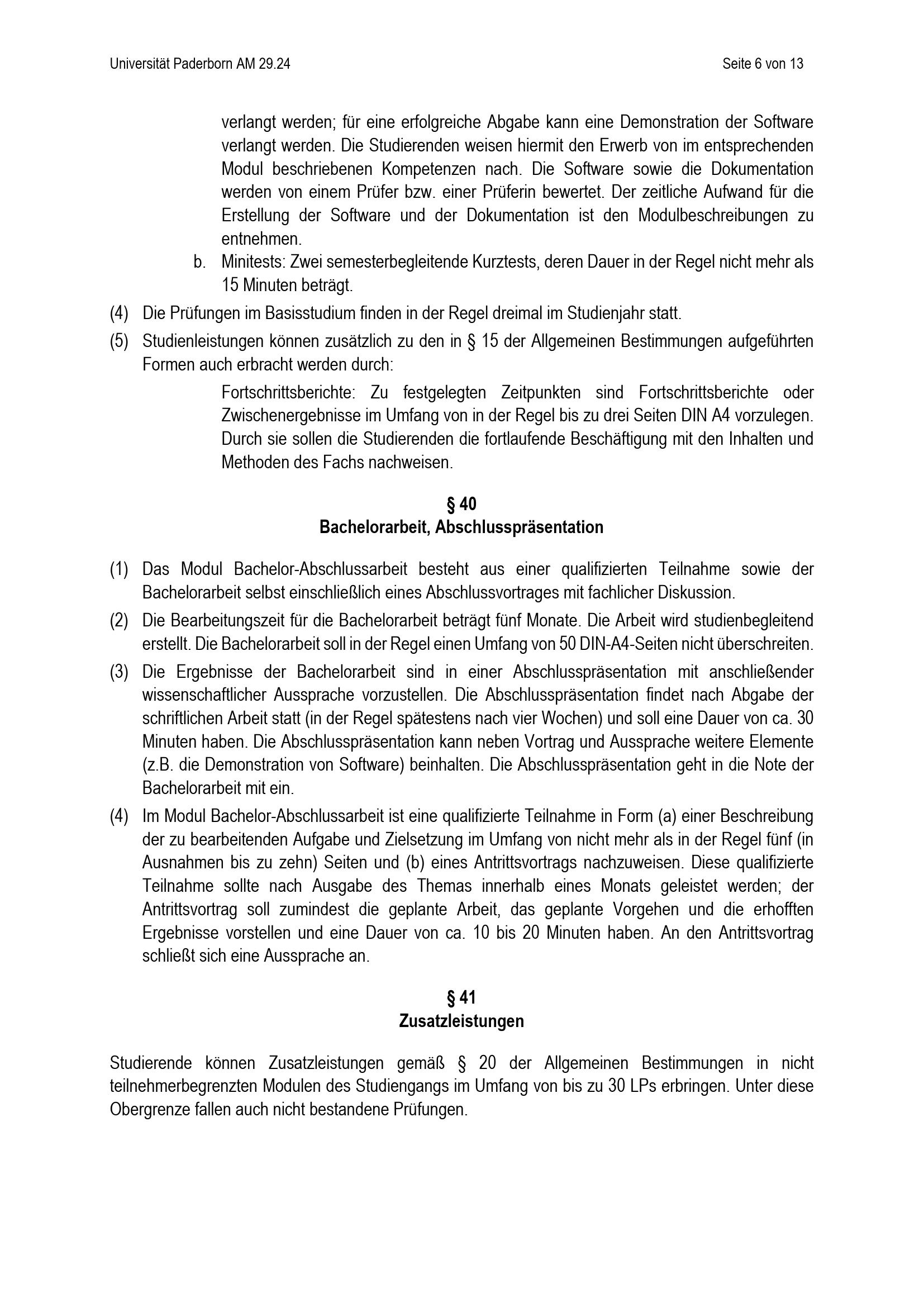 Besondere Bestimmungen der Prüfungsordnung für den Bachelorstudiengang Informatik der Fakultät für Elektrotechnik, Informatik und Mathematik an der Universität Paderborn : vom 24. Mai 2024