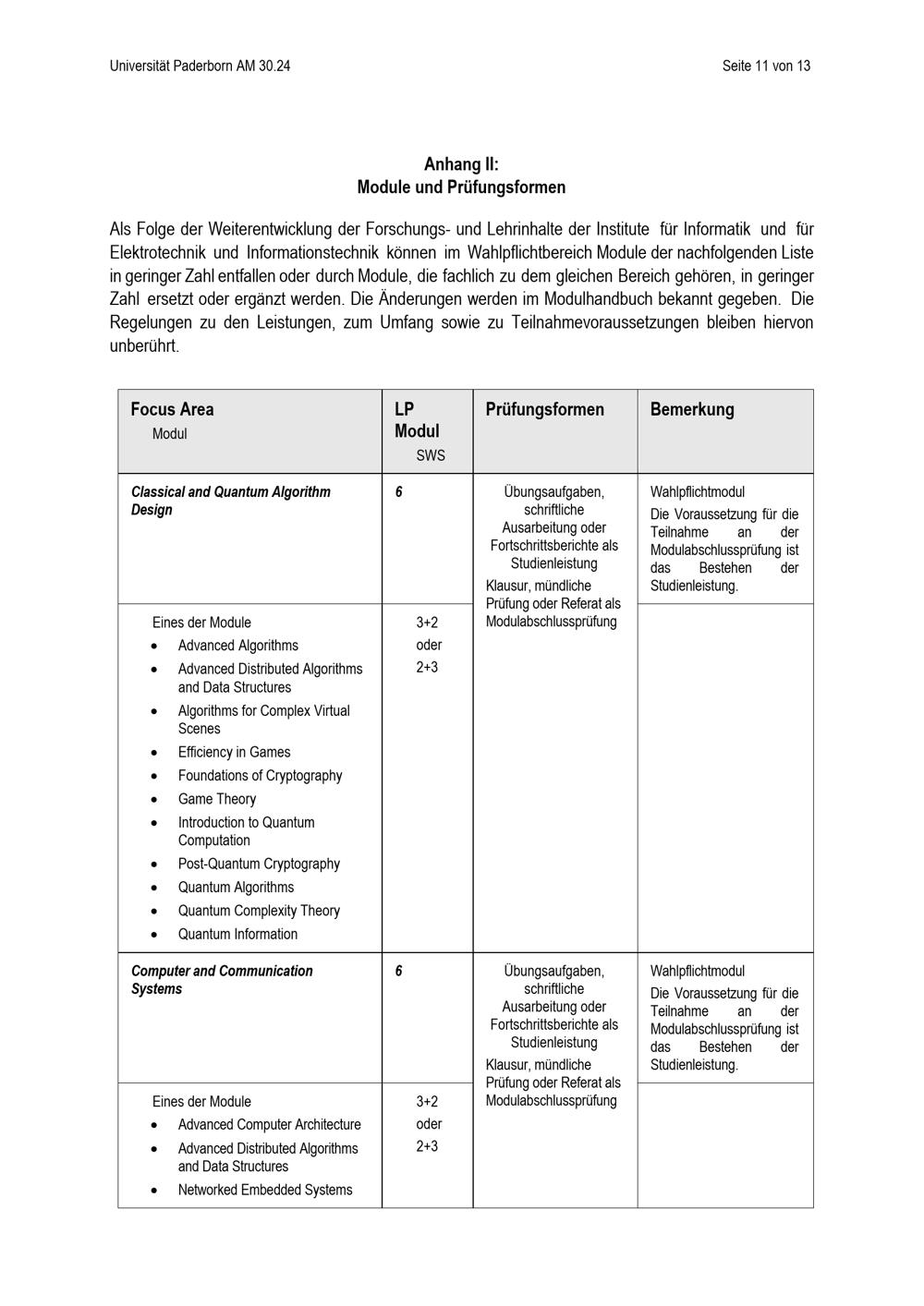 Besondere Bestimmungen der Prüfungsordnung für den Masterstudiengang Computer Science der Fakultät für Elektrotechnik, Informatik und Mathematik an der Universität Paderborn : vom 24. Mai 2024