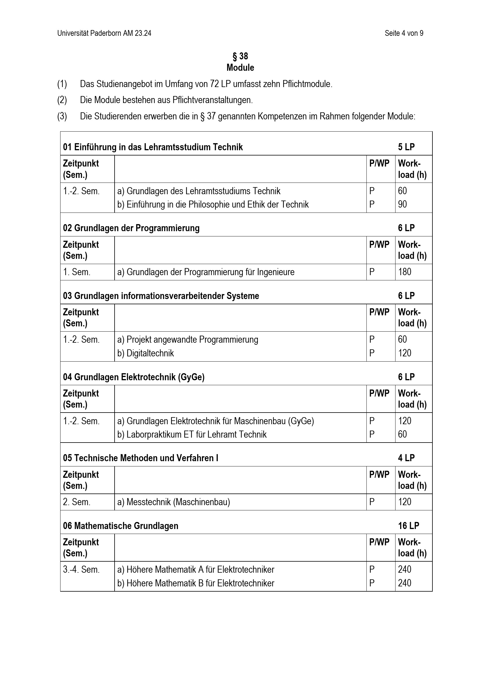 Besondere Bestimmungen der Prüfungsordnung für den Bachelorstudiengang Lehramt an Gymnasien und Gesamtschulen mit dem Unterrichtsfach Technik an der Universität Paderborn : vom 24. Mai 2024