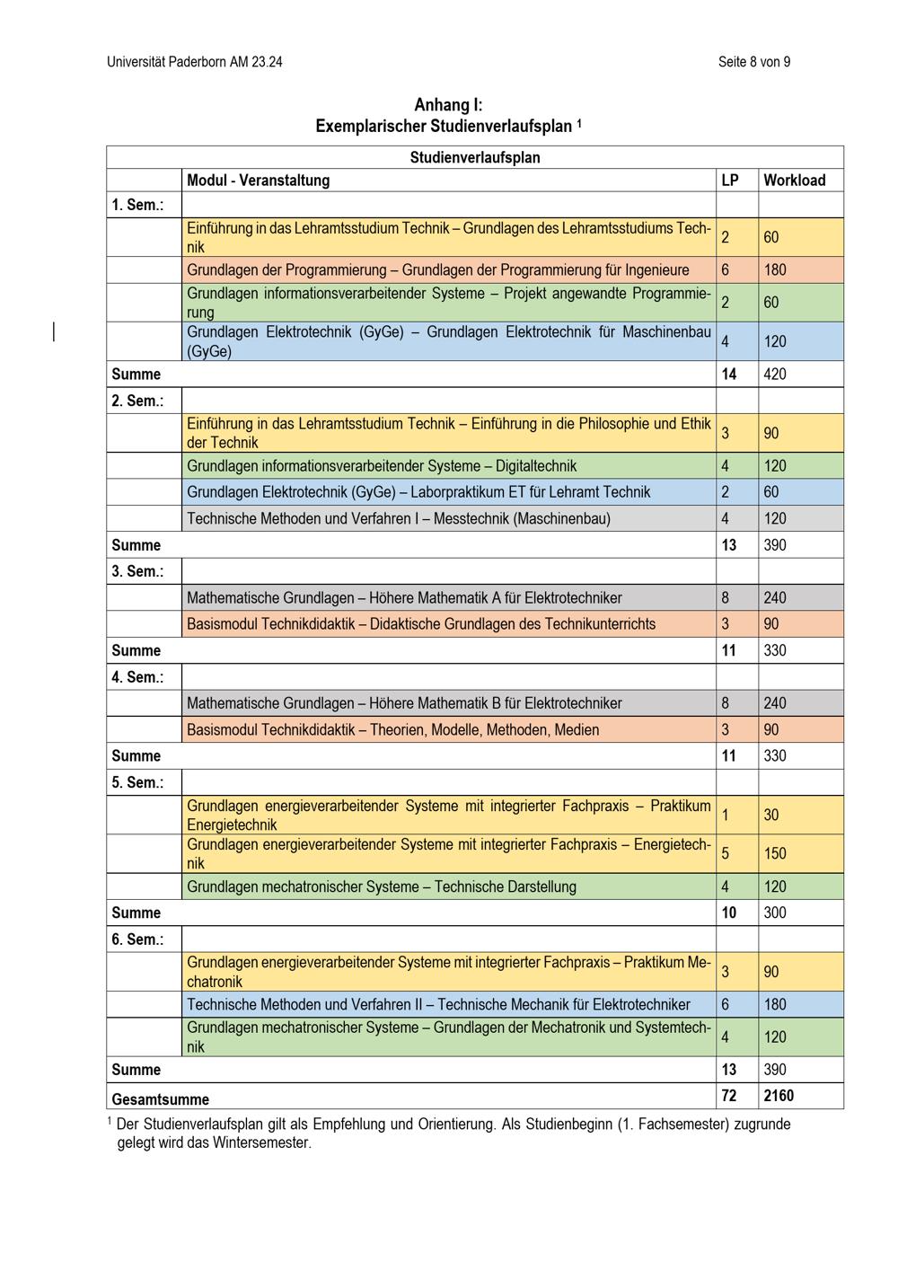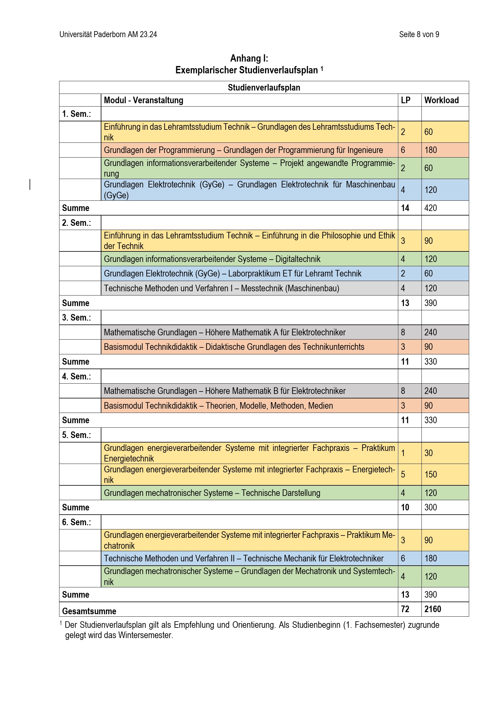 Anhang I: Exemplarischer Studienverlaufsplan 1