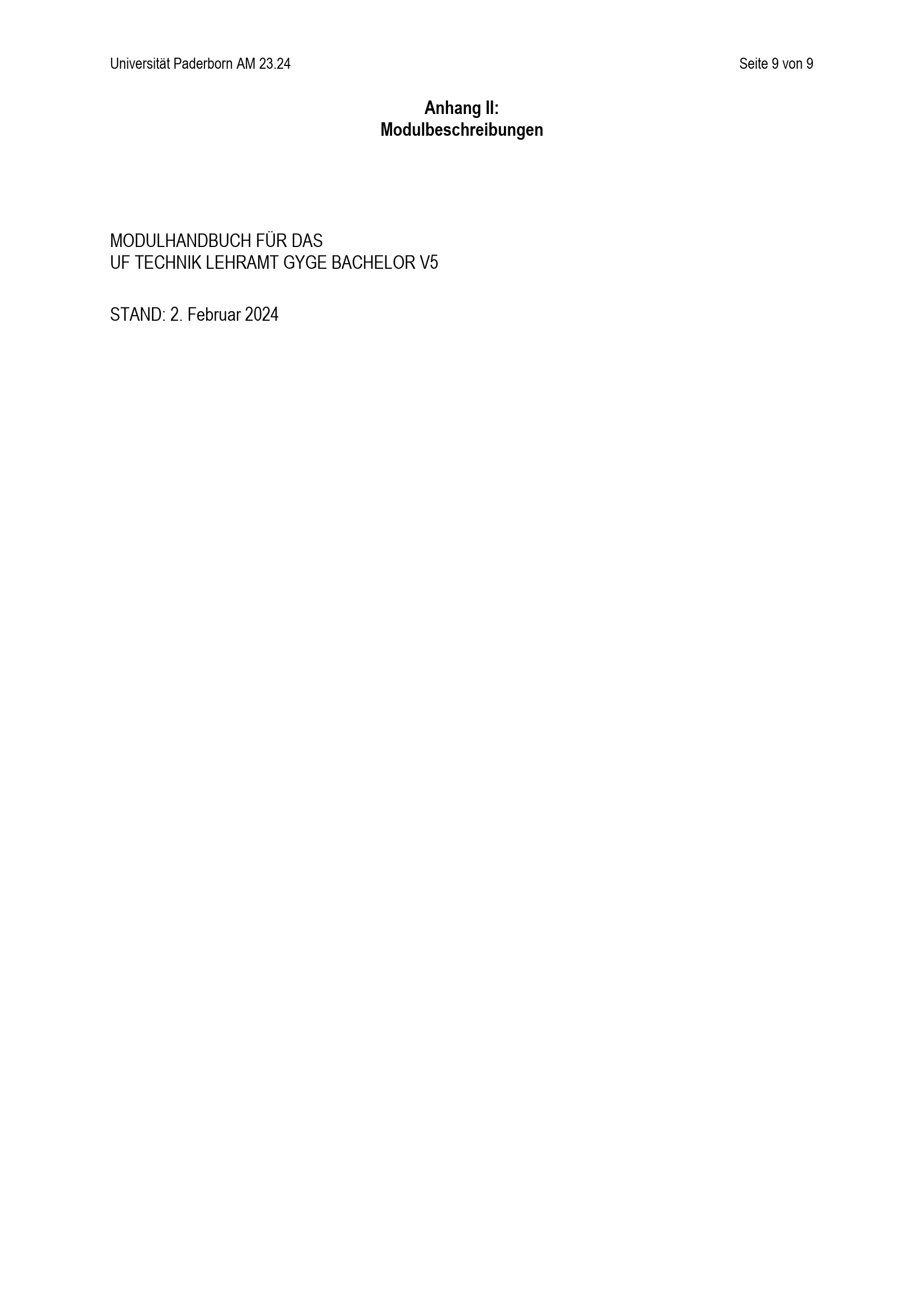 Besondere Bestimmungen der Prüfungsordnung für den Bachelorstudiengang Lehramt an Gymnasien und Gesamtschulen mit dem Unterrichtsfach Technik an der Universität Paderborn : vom 24. Mai 2024