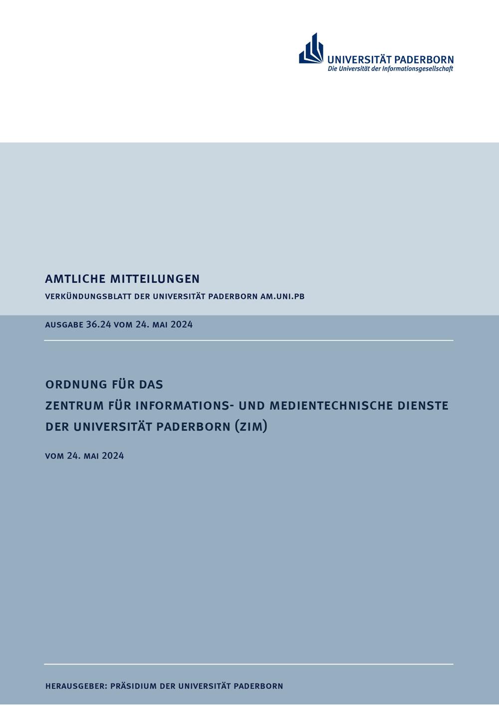 Ordnung für das Zentrum für Informations- und Medientechnische Dienste der Universität Paderborn (ZIM) : vom 24. Mai 2024