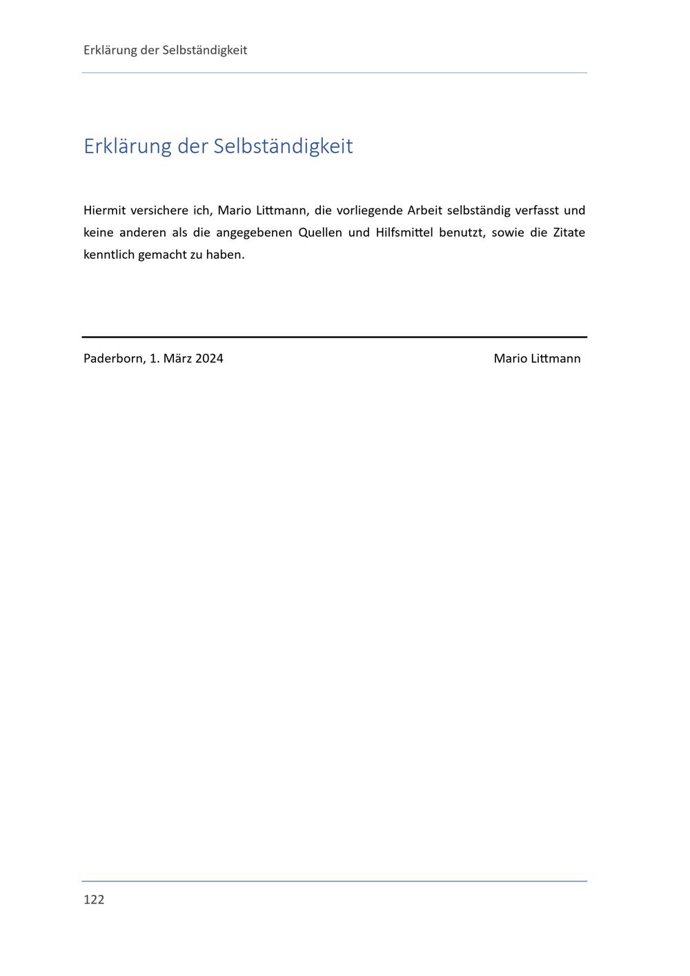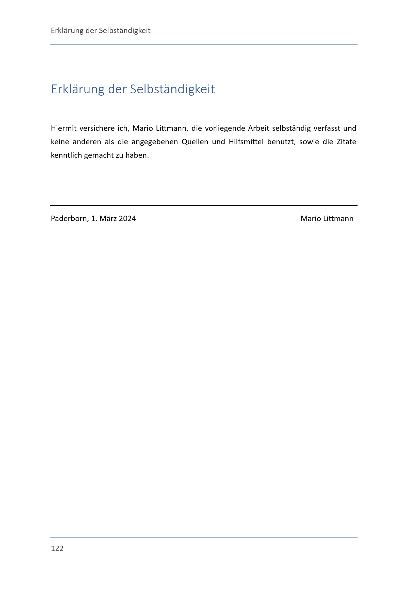 Erklärung der Selbständigkeit