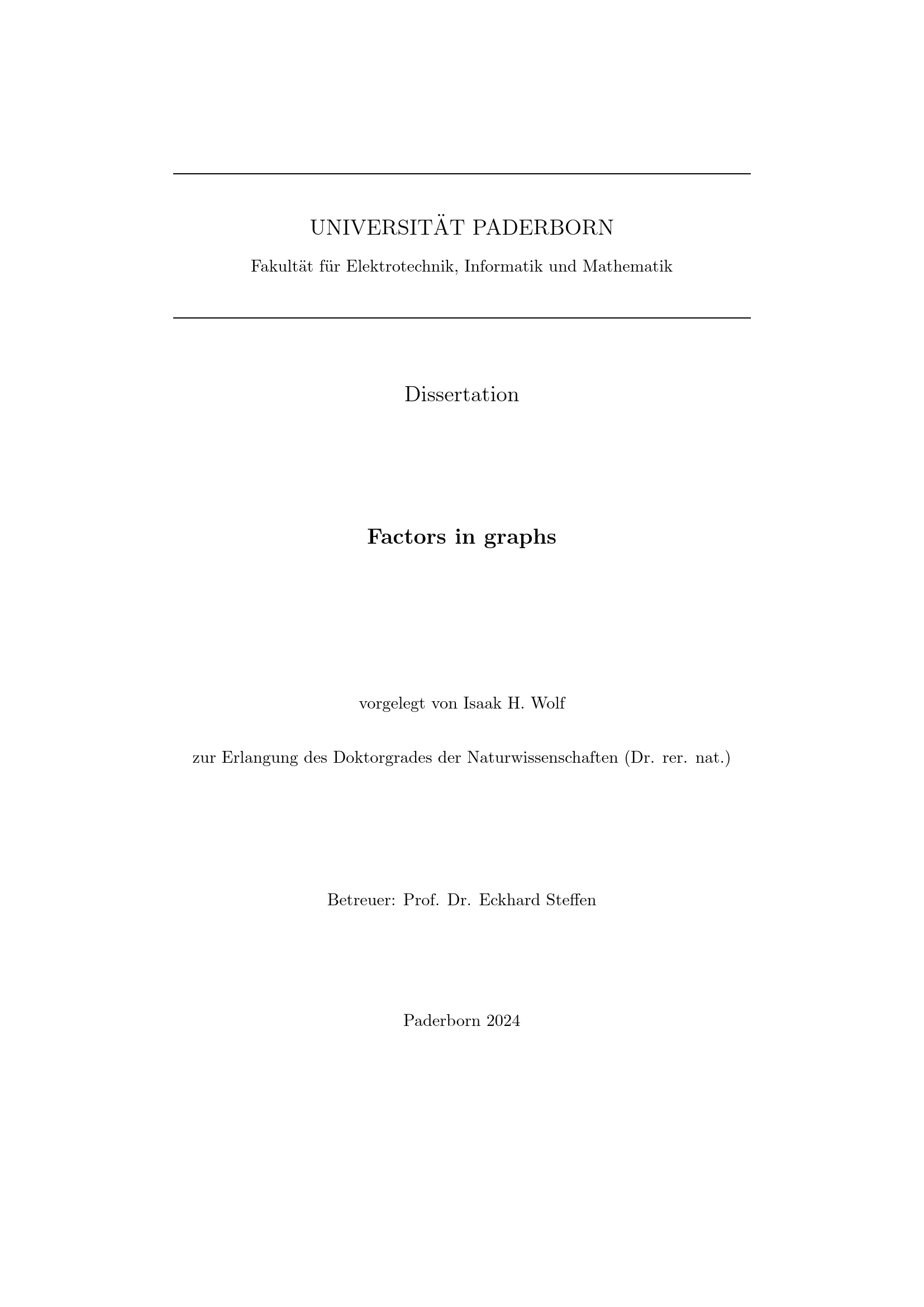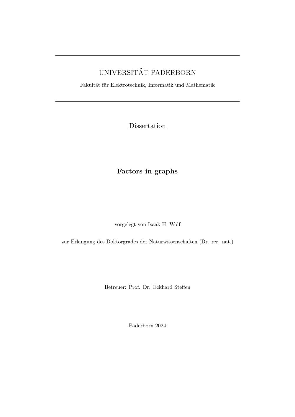 Factors in graphs / vorgelegt von Isaak H. Wolf ; Betreuer: Prof. Dr. Eckhard Steffen