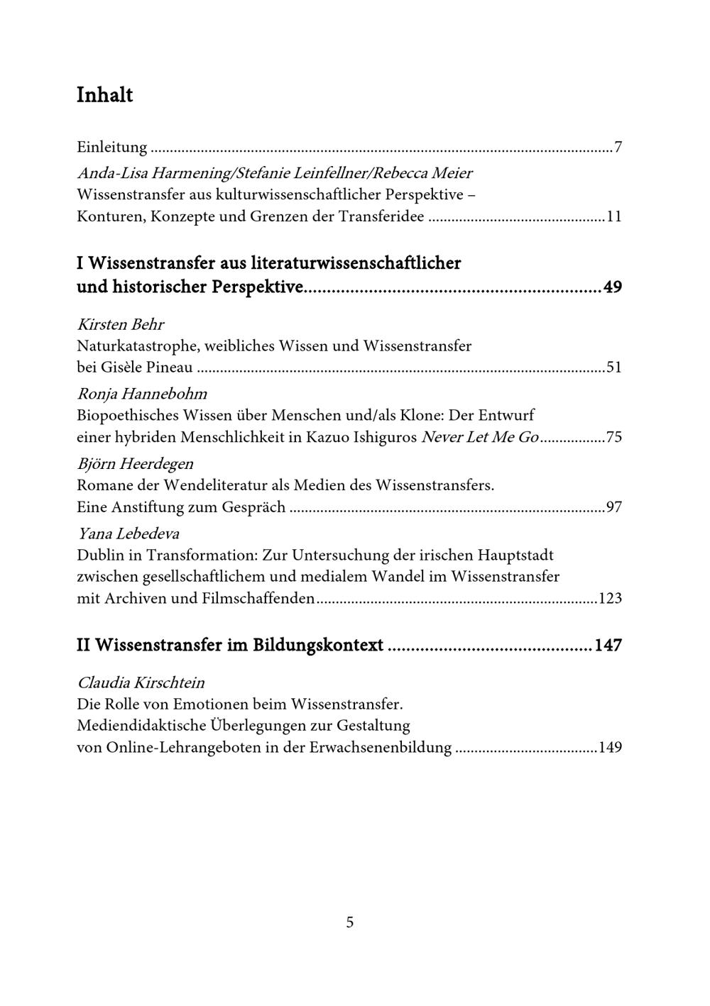 I Wissenstransfer aus literaturwissenschaftlicher und historischer Perspektive
