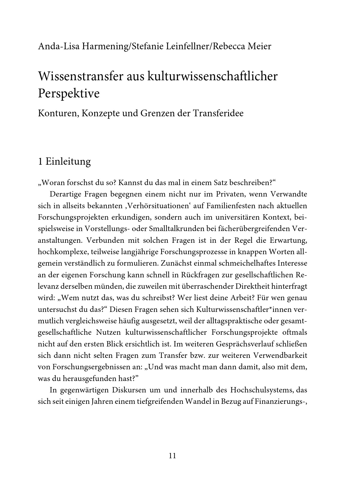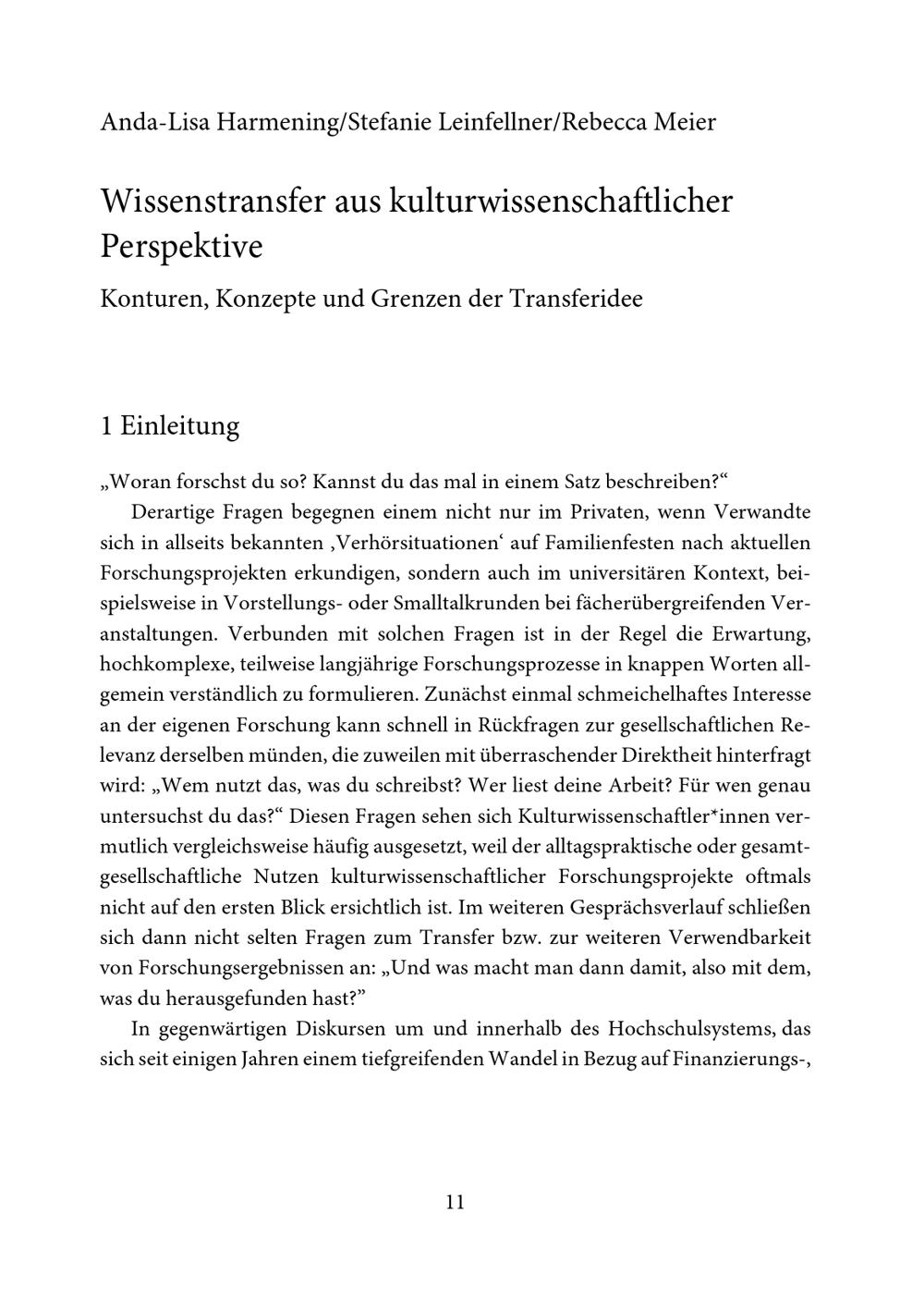 Wissenstransfer : Aufgabe, Herausforderung und Chance kulturwissenschaftlicher Forschung / Anda-Lisa Harmening / Stefanie Leinfellner / Rebecca Meier